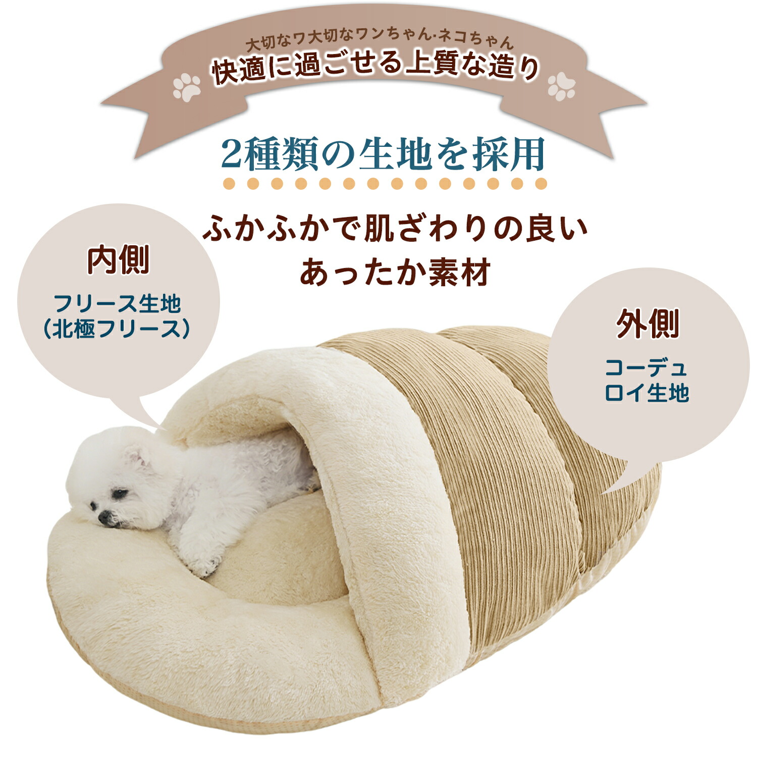 ペットが寒い冬を快適に過ごし、飼い主様も安心できる、やさしい寝心地のベッドです。
