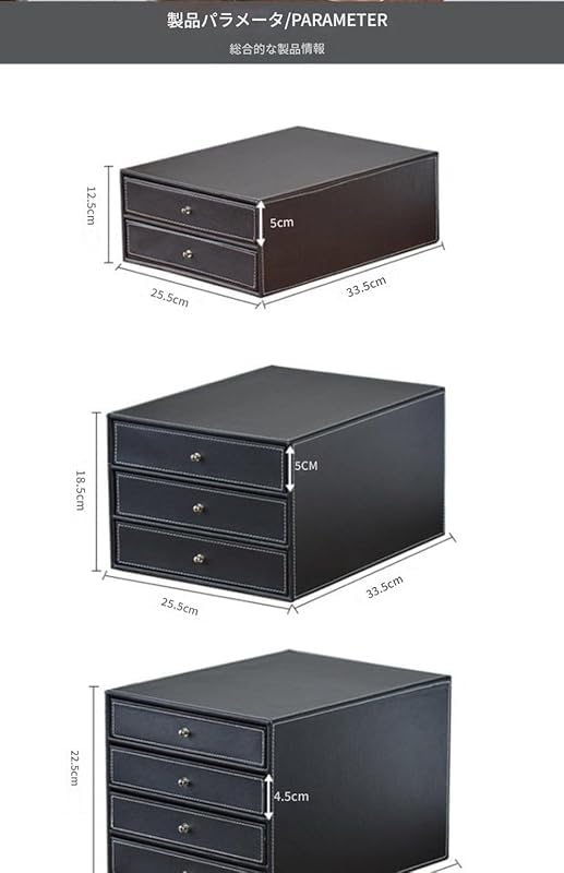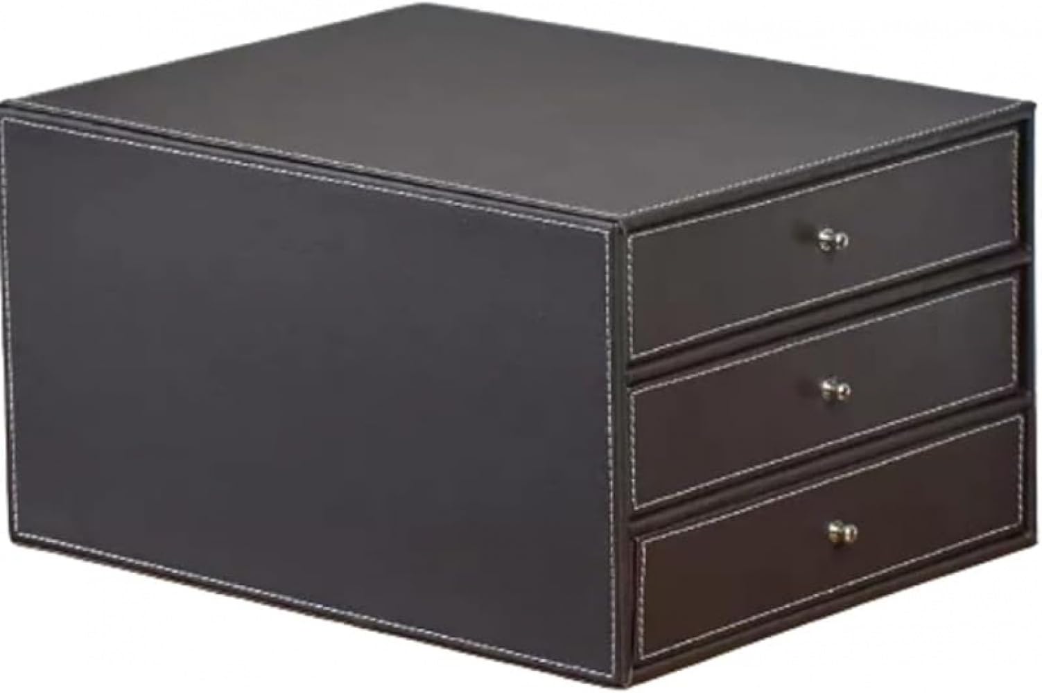 多機能 レザー卓上収納チェスト 4 書 コーヒー色 ブラック 33*25*22.5センチメートル 33.5×25.5×18.5センチメートル。