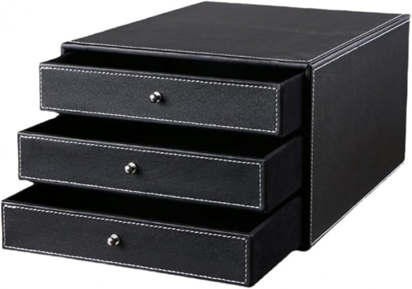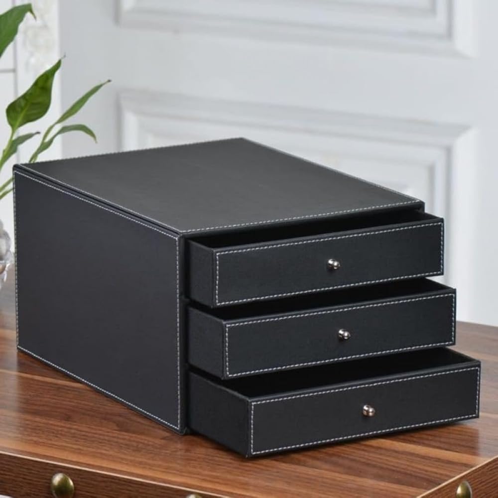 多機能 レザー卓上収納チェスト 4 書類専用整理ケース付き引き出しでデスク小物を一括収納 キューブボックス構造で取り出し簡便&空間有効活用 レターボックス機能付き多目的デスクオーガナイザー トレー付き