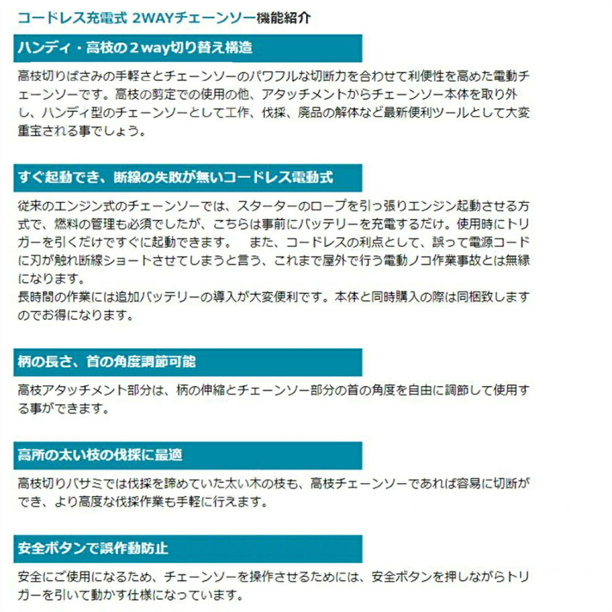 チェーンソー 高枝切り電動チェーンソー 本体 本体+延長ボール 本体のみ 本体+バッテリー+充電器 本体+バッテリー*2+充電器