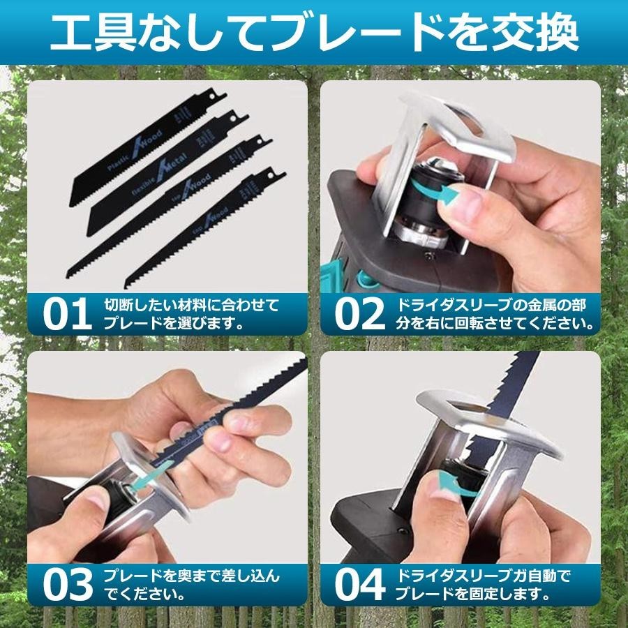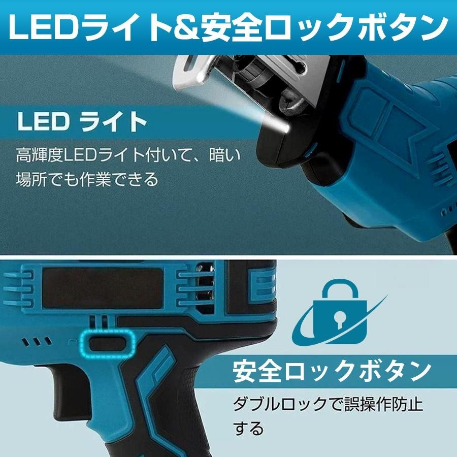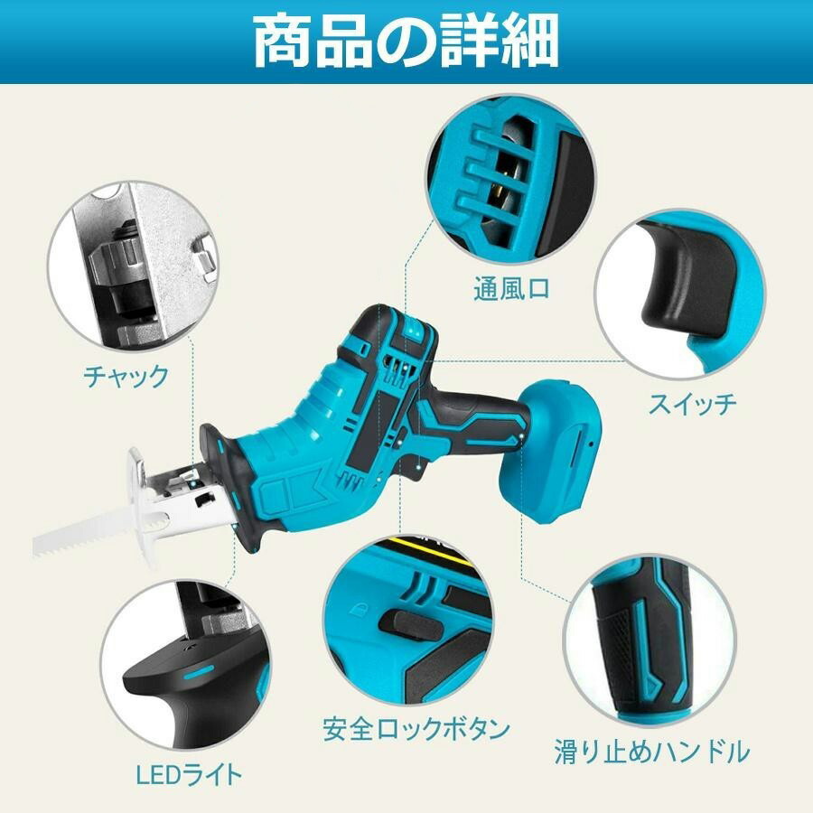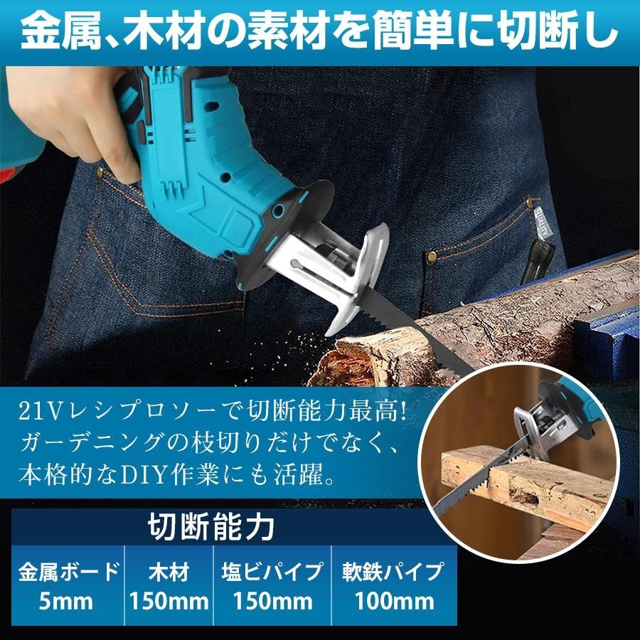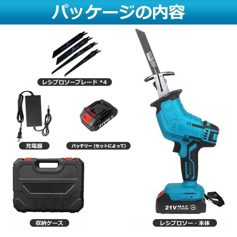 レシプロソー 充電式 マキタ互換 替刃 本体+部品(バッテリーなし) 本体+部品+バッテリー*1 本体+部品+バッテリー*2