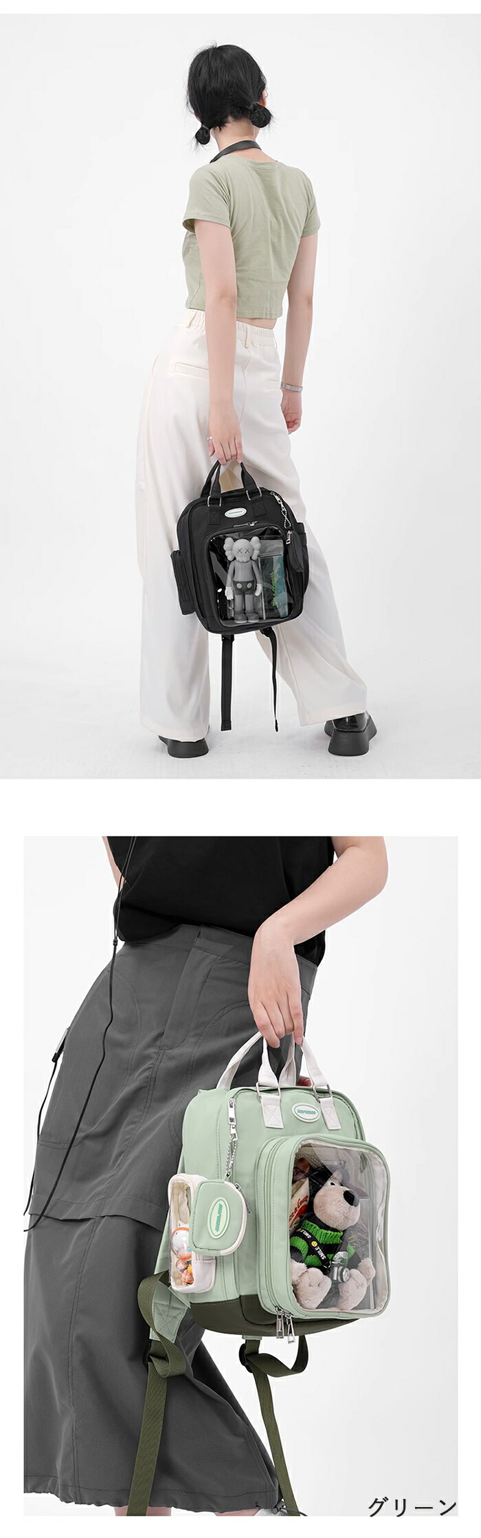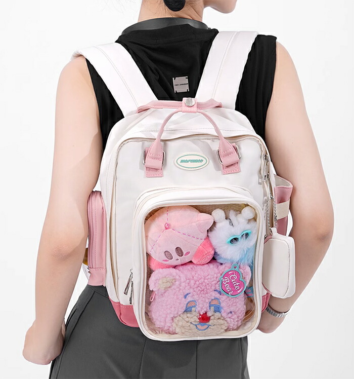 商品名:痛バッグ ぬいぐるみ リュック トートバッグ レディース 痛バ 2way クリア 痛バッグ おしゃれ バックパック 大きめ 推し活バッグ 手持ち 収納 推し色 ライブ アイドル アニメ ゲーム ぬい 大容量 デコ 缶バッチ 夏バッグ通学 通勤 カジュアル プレゼント