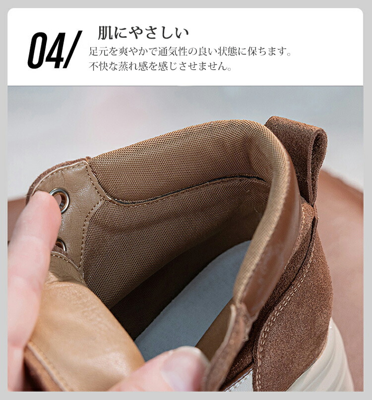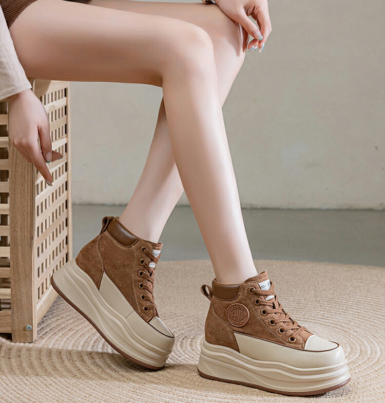 厚底ソールとインヒールを合わせることで、スニーカーなのに合計8/10cmのヒールアップを実現!膝下のラインを物理的に長く見せることで、履いた瞬間に全身のバランスが整い、モデル級のスタイルへ導きます。こっそり身長を盛りたい方に最適です。
