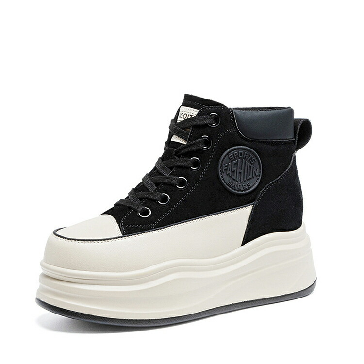 厚底 スニーカー 10cm レディース 8cmヒール スポーツシューズ ウォーキング ランニング 運動靴 カジュアルシューズ オフィス 通勤 通学 婦人靴 美脚 歩きやすい 疲れない おしゃれ レースアップ 黒 ハイカット 軽量 ヒールアップ 22-24.5CM