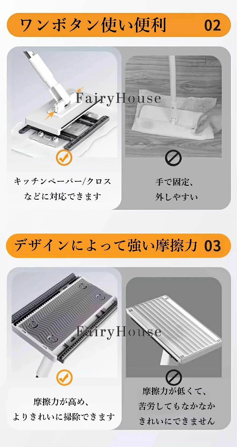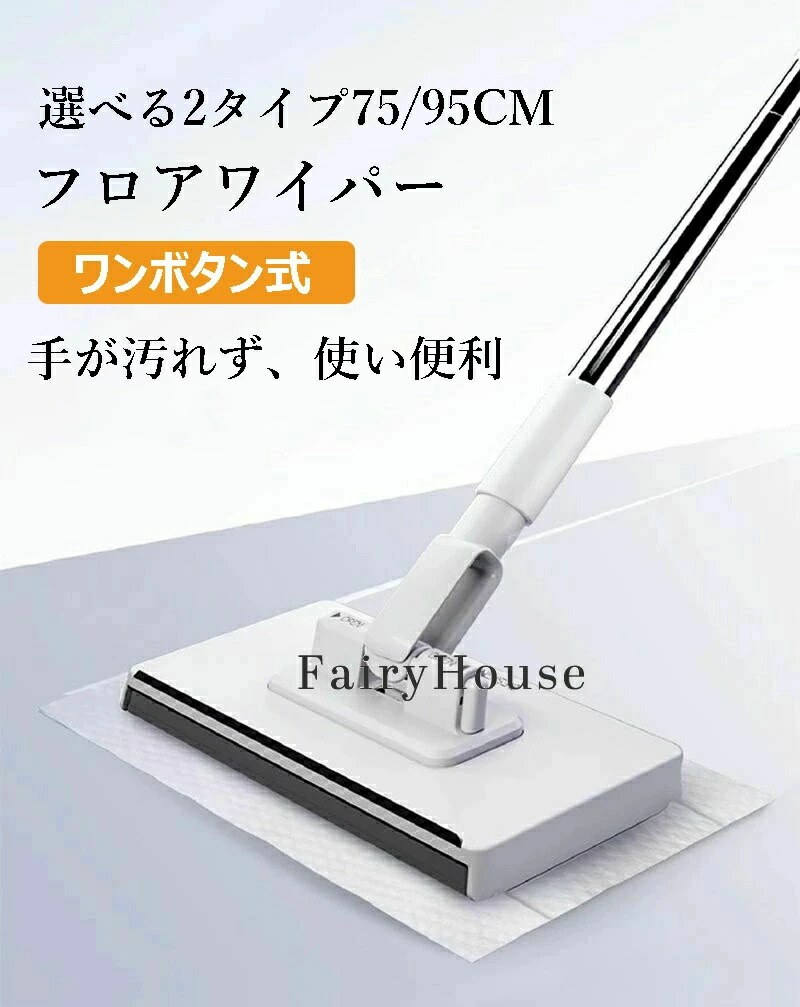 フェイスタオル対応 床掃除モップ 片手 日用品雑貨 文房具 手芸 人気 ホワイト【74cm】 ホワイト【95cm】