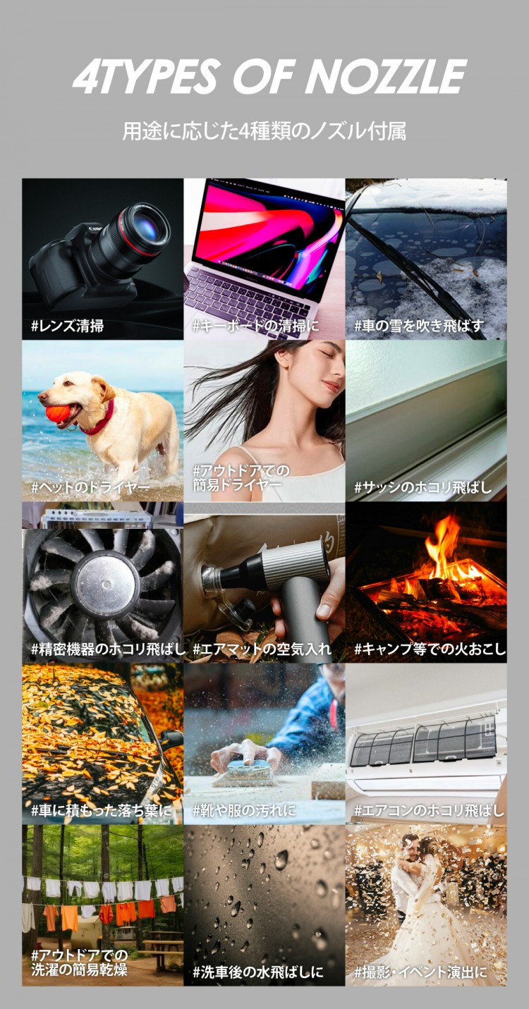 ※3段階の風量調整と、4種類のノズルで使い分けできる