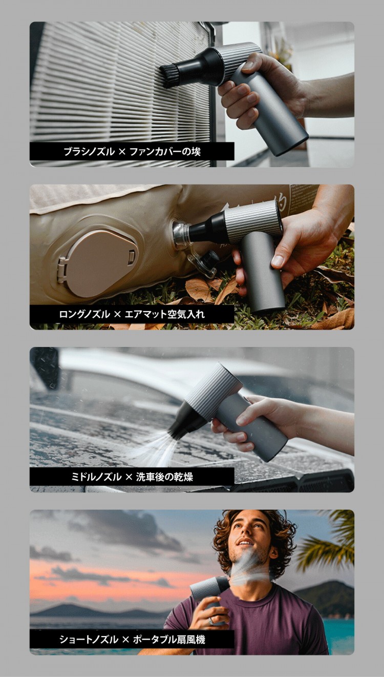 電動 エアブロワー 超強力 バイオレント ハンディ エアダスター 充電式 金属ボディー アルミ ミニ ブロワー エアーダスター 4種類ノズル付 洗車 ハイパ