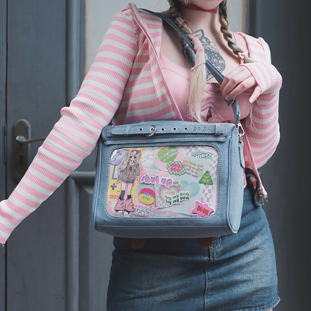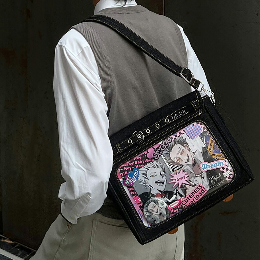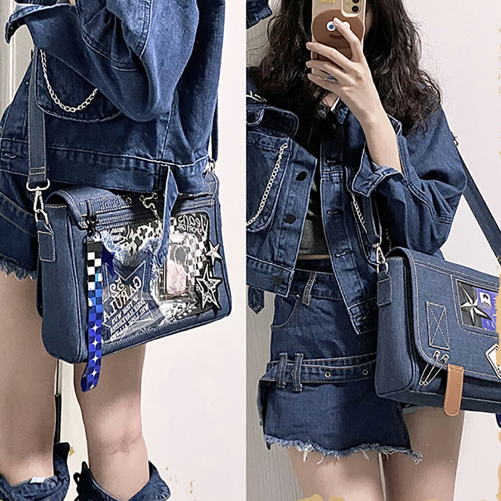 痛バッグ デニム風痛バ トートバッグ バッグ 小物 ブランド雑貨 37%Off ブルー ダークブルー ブラック