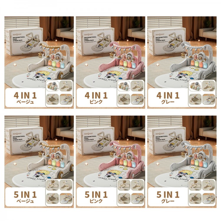 ベビージム レイマット 5in1 ジム おもちゃ ゲーム 豊富 グレー ベージュ ピンク 4IN1 5IN1