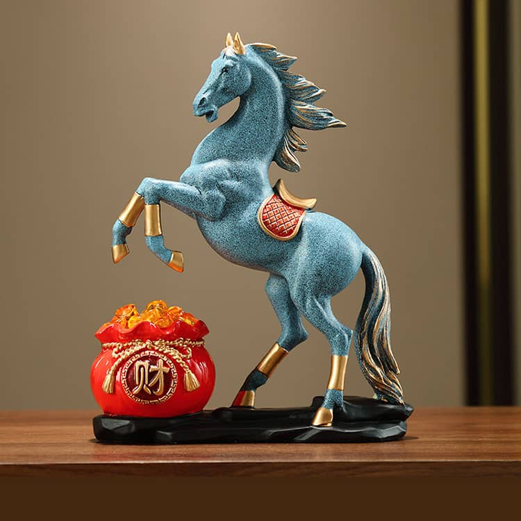 馬の置物 お守り 干支 午 馬 風水グ ゴールド ベージュ ブルー