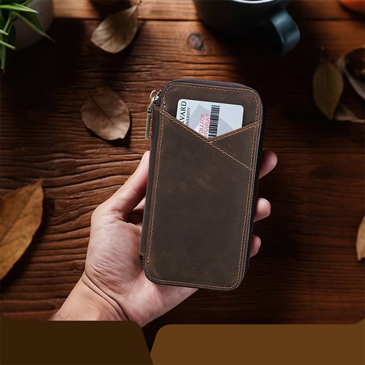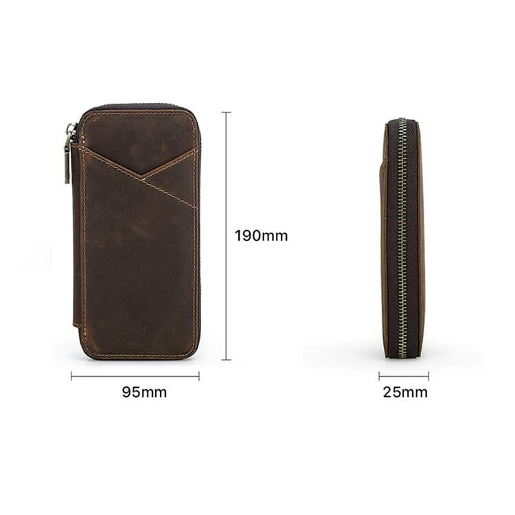 【本革クレイジーホースレザー】牛革の最表面の皮を使用した本革のペンケース。牛革の最表面の皮は繊維が細かく、頑丈で耐久性にすぐれています。本革の中でもクレイジーホースレザーと呼ばれる革を使用して作られています。クレイジーホースレザーは品質の良い牛の原皮(馬の皮ではありません)を使用し、植物性タンニンで鞣した皮でしっとりとしたやや起毛した質感が特徴的なレザーです。ペンケースの内側は起毛加工技術を採用し作られており、手触りが滑らかで耐久性にも優れています。「思わず誰かに見せたくなる」そんな革製品を目指して作りました。