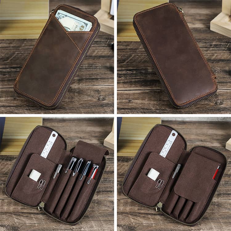 レザー 収納 ペンケース 小物入れ 筆袋 革 万年筆 4本対応 筆箱 ボールペンケース 万年筆入れ ケース 貴重な万年筆収納 高校生 ひっかき防止 勉強用の小物収納 固定位置