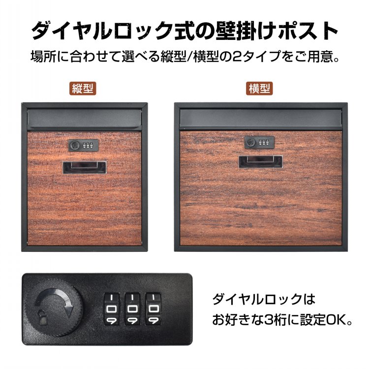 ポスト 壁掛けポスト 郵便ポスト 宅配 ブラウン ナチュラル 横型 縦型