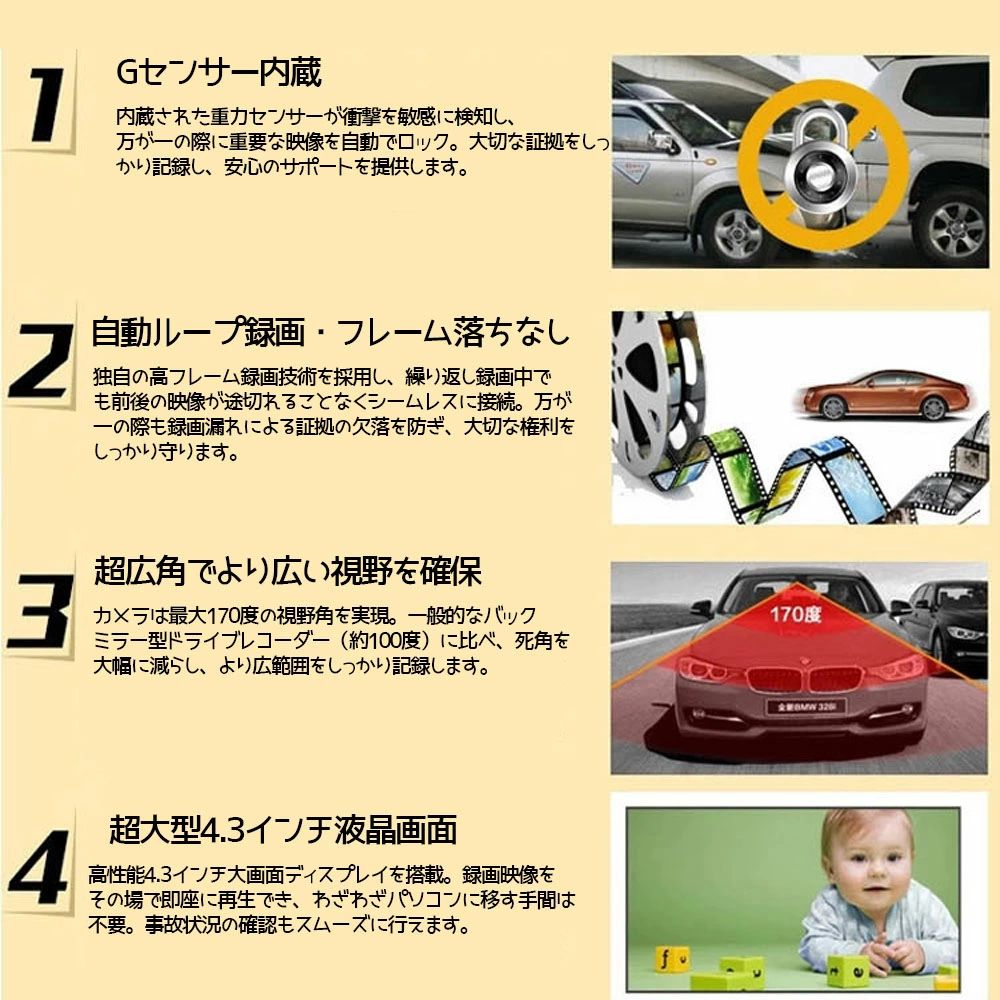 ドライブレコーダー 前後カメラ 170