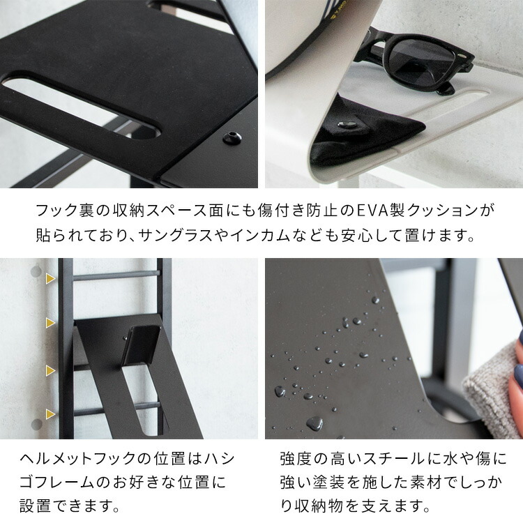ヘルメットスタンド 棚付き ハイタイプ ヘルメットラック バイク 収納 ラダーラック ハンガーラック フルフェイス 自転車 玄関収納 幅30cm スリム 省スペース スチール製 白 おしゃれ モダ 黒