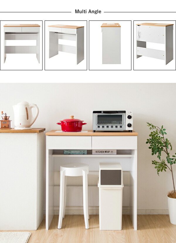 キッチンカウンター テーブル 間仕切り 幅80cm 引き出し ダストボックス ゴミ箱 上 レンジ 食器 キッチンラック スリム キッチン 収納 棚 作業台 レンジ台 キッチン収納棚 オープ カウンター