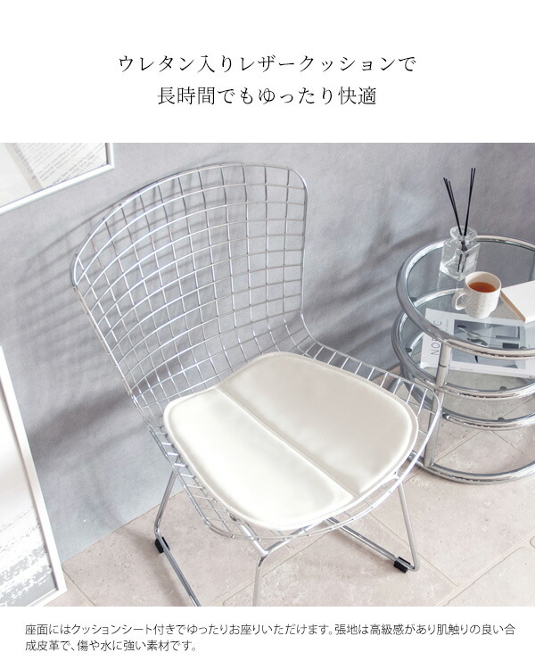 ワイヤーチェア リプロダクト デザイナーズチェア ダイニングチェア レザー座面 おしゃれ 北欧 モダン 椅子 スチール製 シルバー ブラック ホワイト デスクチェア リビングチェア パソ カフェチェア