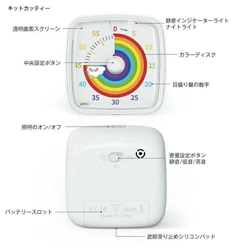 タイマー 子ども 時間管理 学習タイマ キッチン用品 食器 調理器具 続々登場 ホワイト ブルー ピンク グリーン