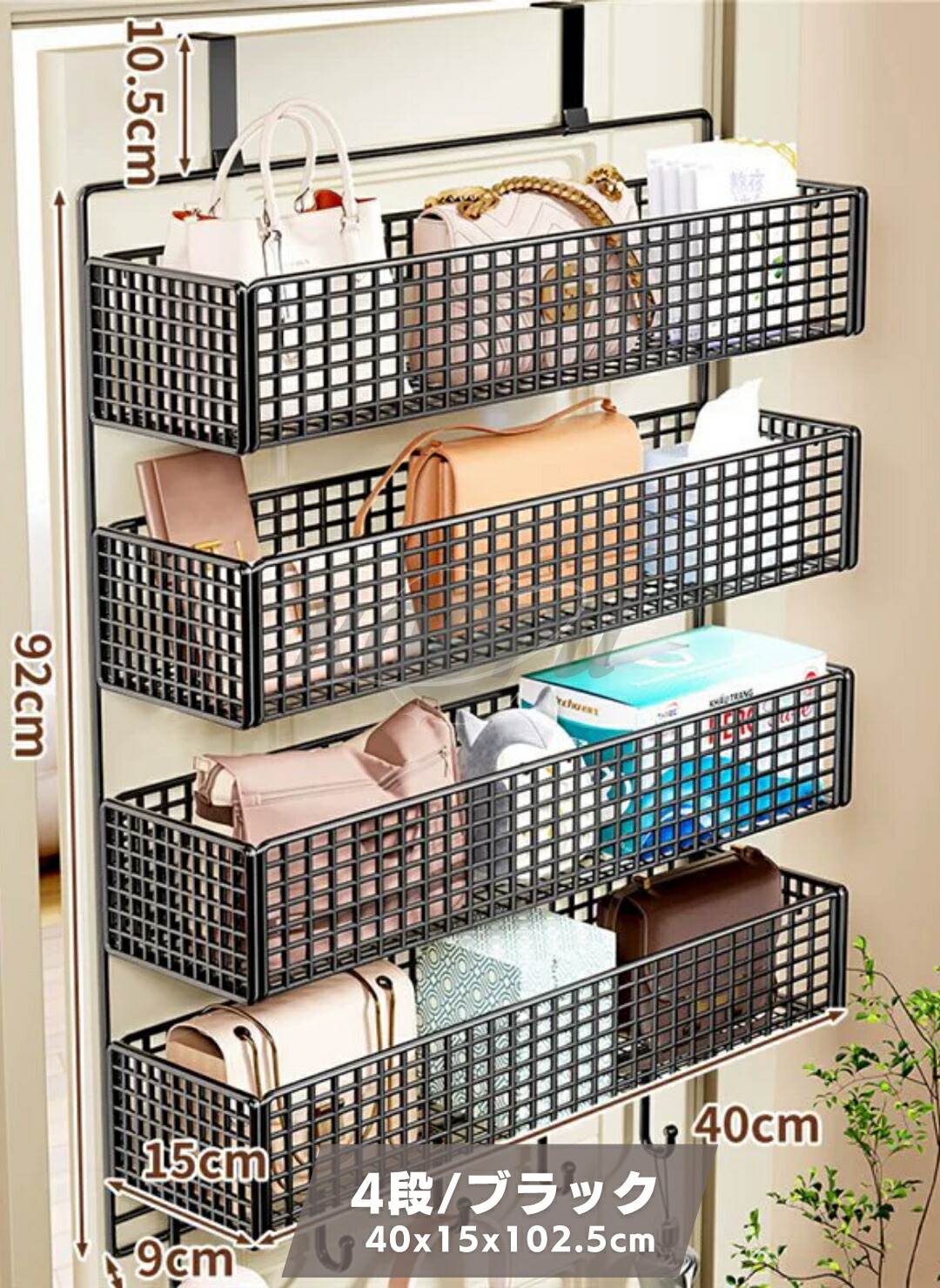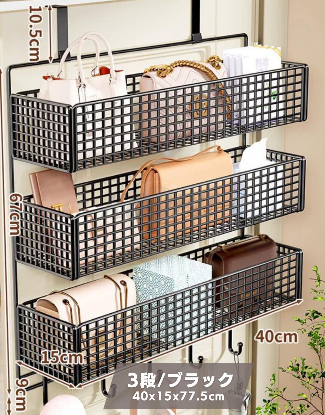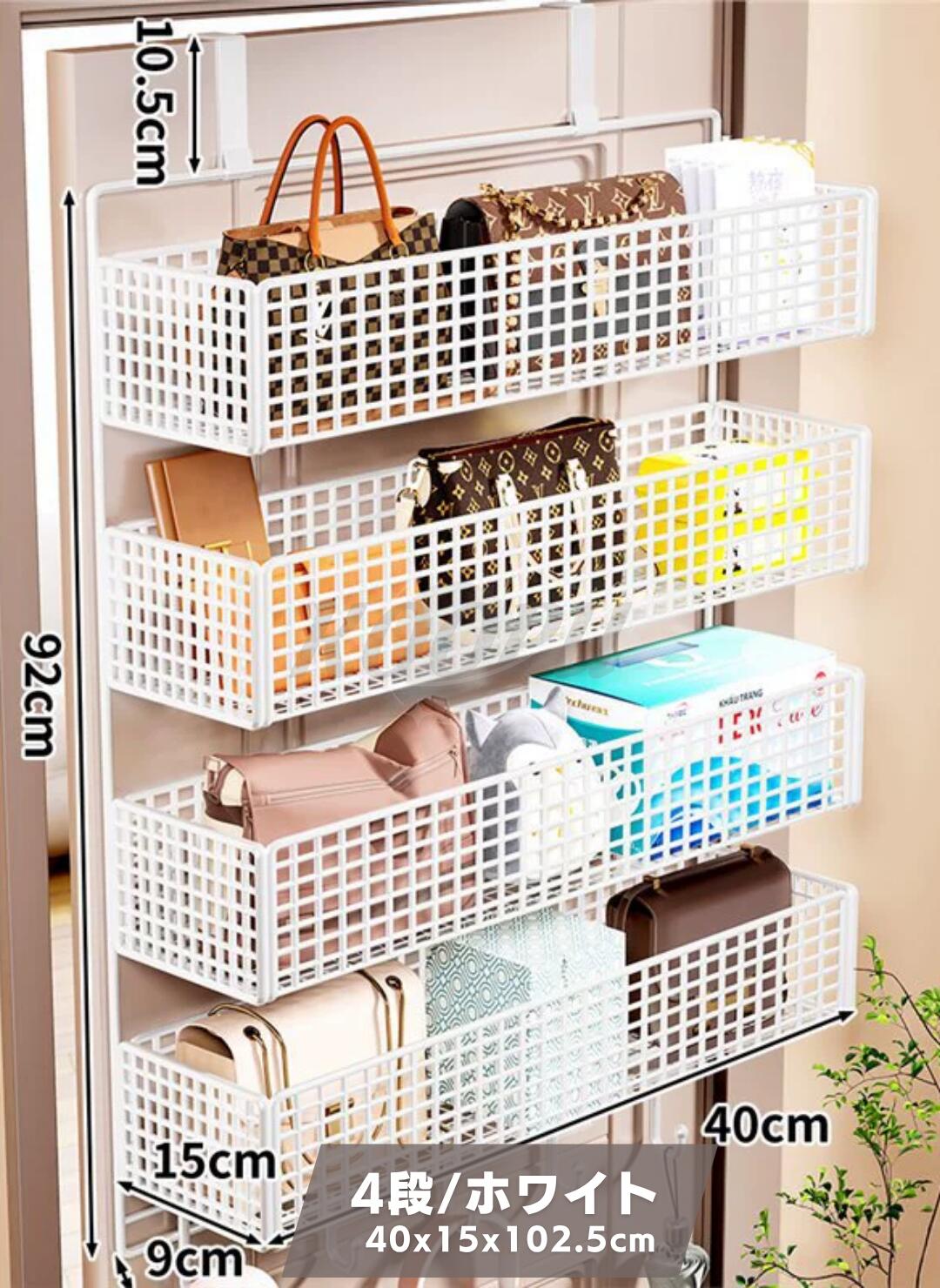 ウォールポケット ドア掛け収納ラック 1 2 3 4段大容量 クローゼット 収納 吊り下げ ドア上スパイスラック パントリードアオーガナイザー 金属製バスケット 壁掛け収納ポケット 小物 吊り下げ収納