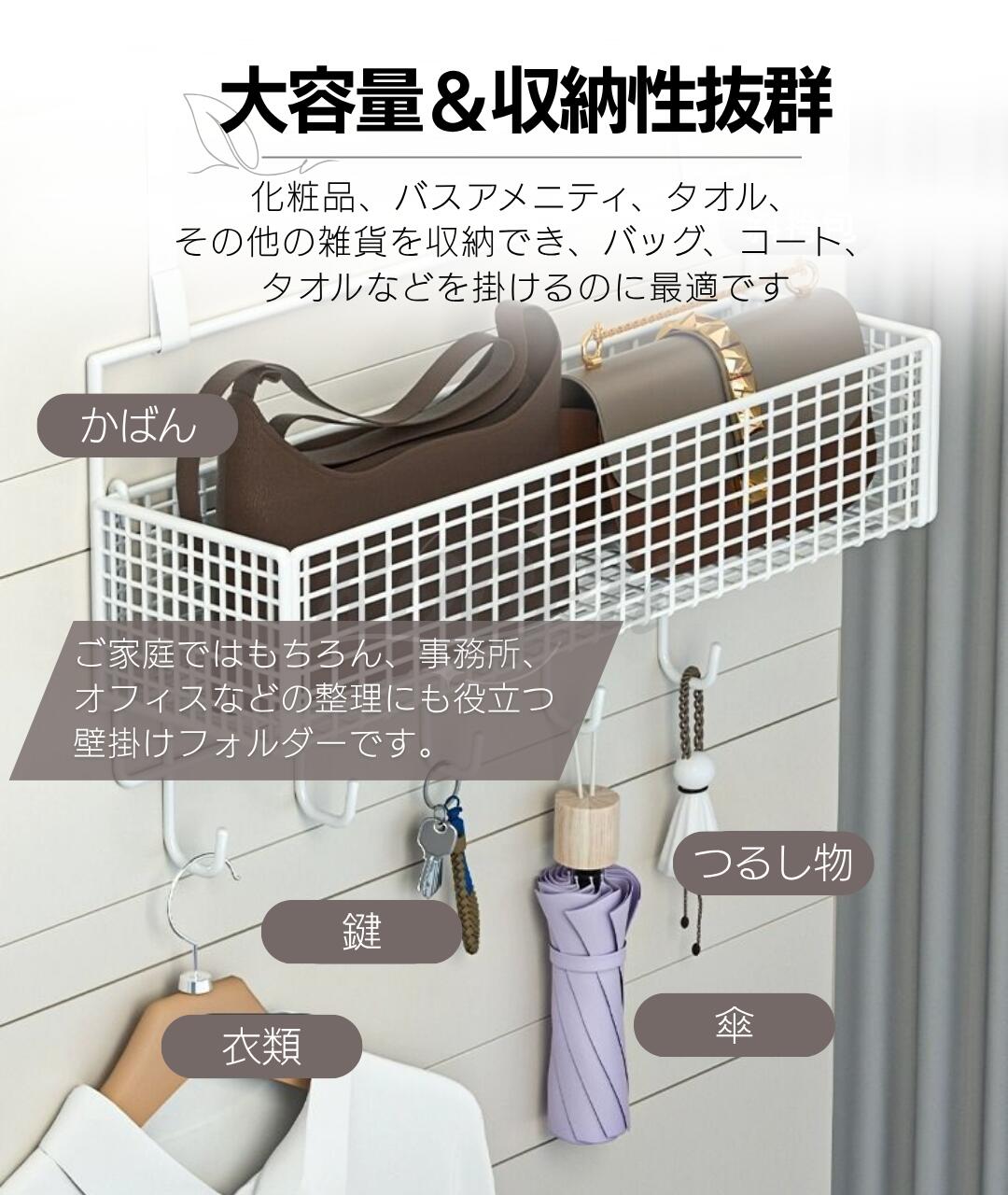 ・玄関・洗面所・キッチン・脱衣所・リビング・子供部屋など、さまざまな空間で使える壁掛け収納グッズ。