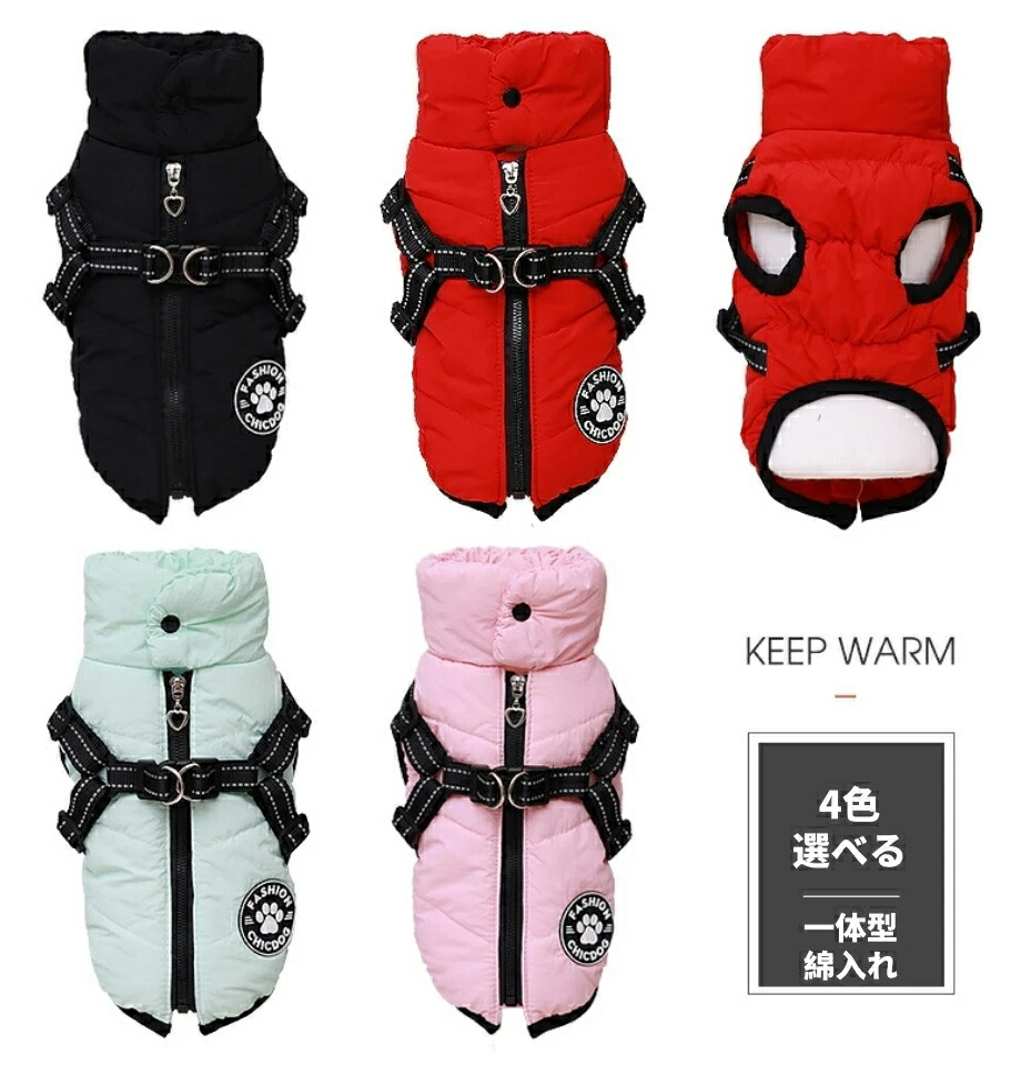 犬 服 ダウン風 ハーネス ジャケット ペット ペットグッズ 続々登場 XS S M L XL XXL ピンク グリーン レッド ブラック