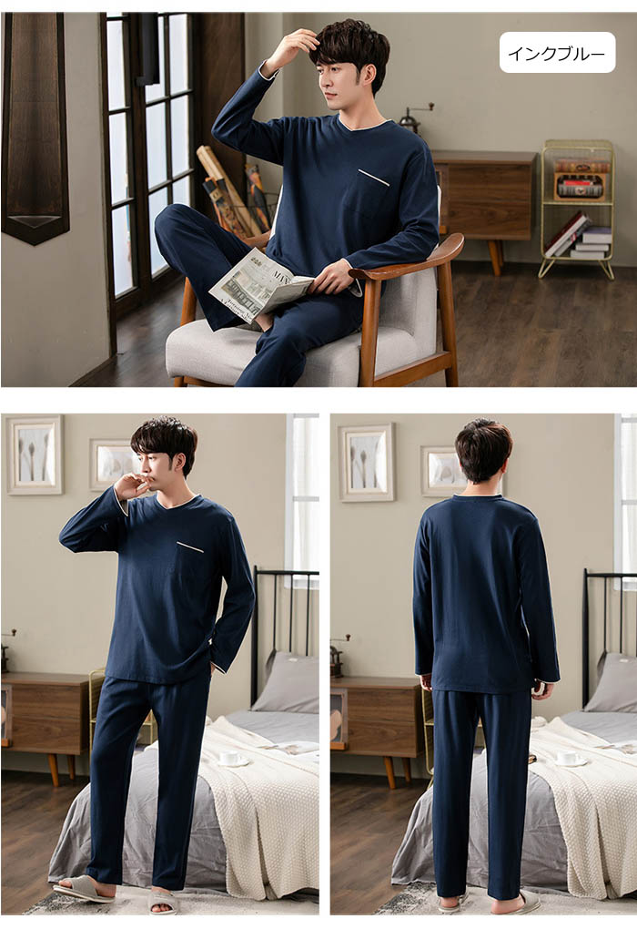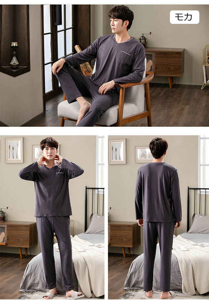 メンズ ルームウェア 2点セット パジ インナー 下着 ナイトウエア 早い者勝ち!ポイントUP グレー ベージェ ネイビー カーキ モカ インクブルー L XL 2XL 3XL 4XL