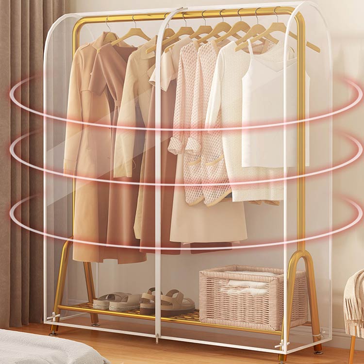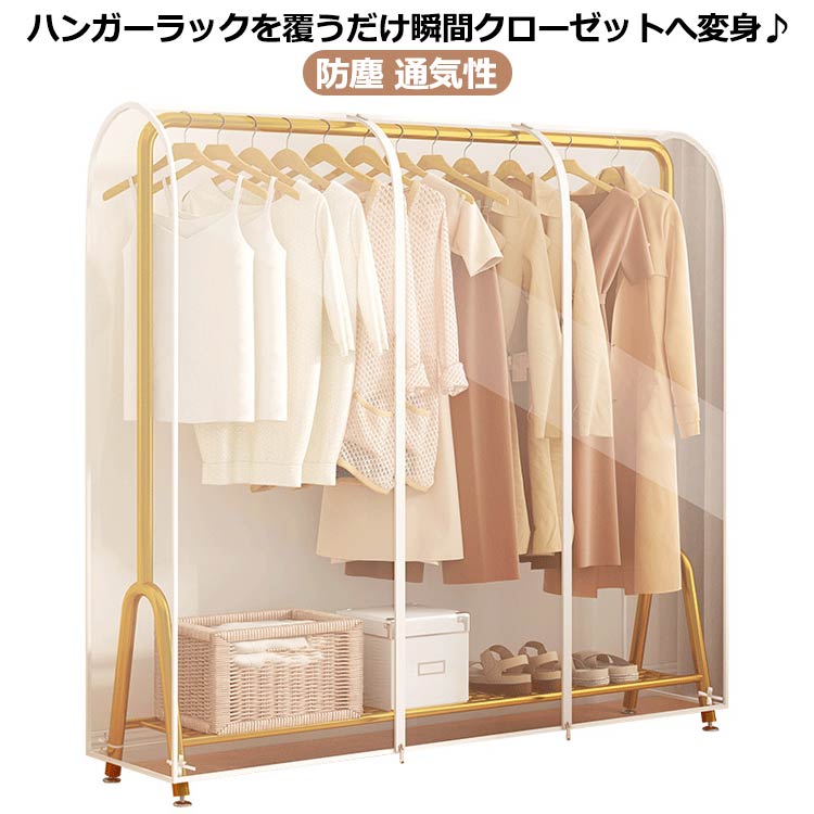 ハンガーラックカバー パイプハンガーカバー 270°すっぽりカバー 防塵 通気性 洋服カバー 防カビ 透明 クリア ハンガーラック カバー 衣類カバー ファスナー開閉式 コートカバー ドレスカ ダブル