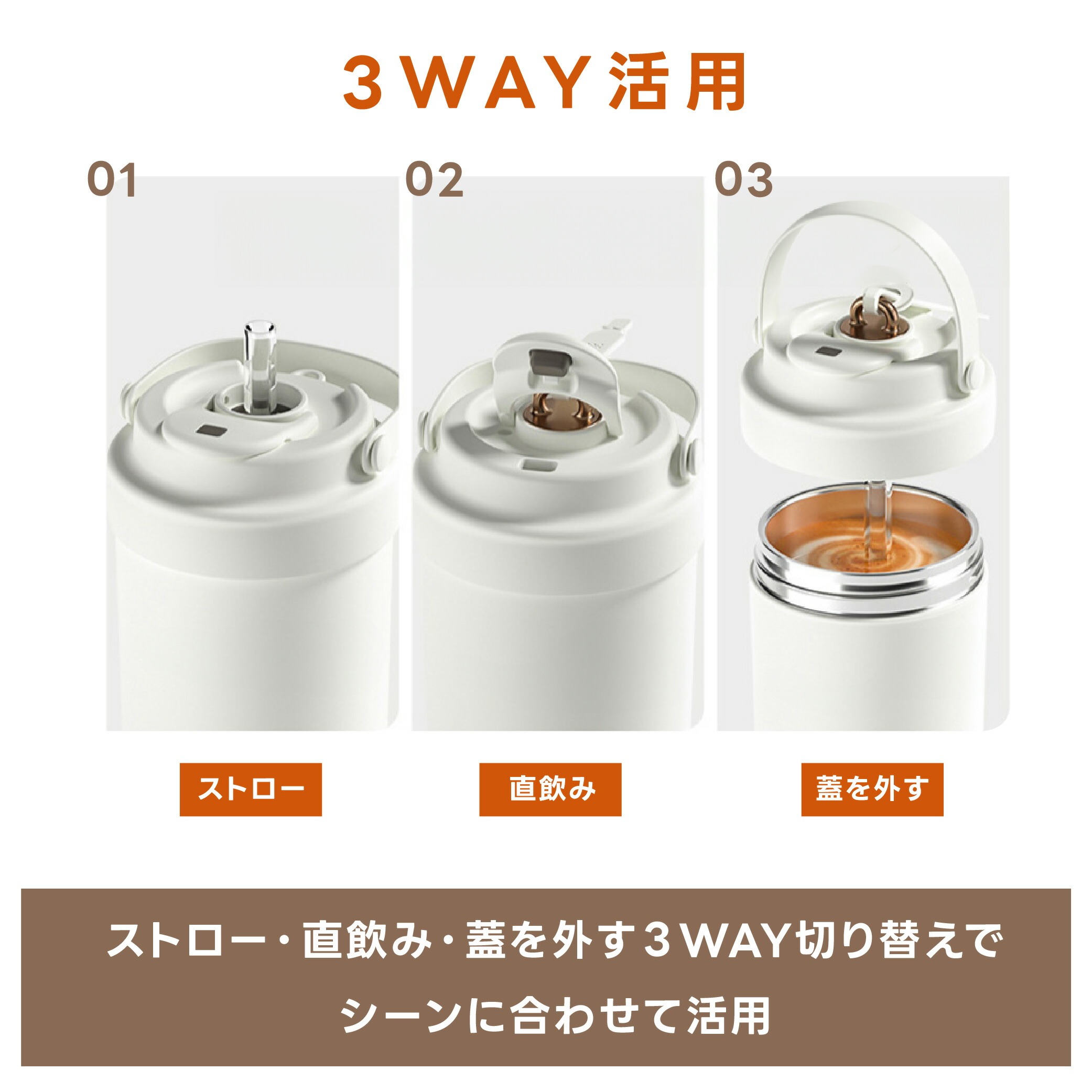 タンブラー 3way ストロー付き 保 弁当箱 水筒 水筒 マグボトル 特集 Mサイズ Lサイズ ブラック シルバー ピンク ホワイト アイボリー ブラウン