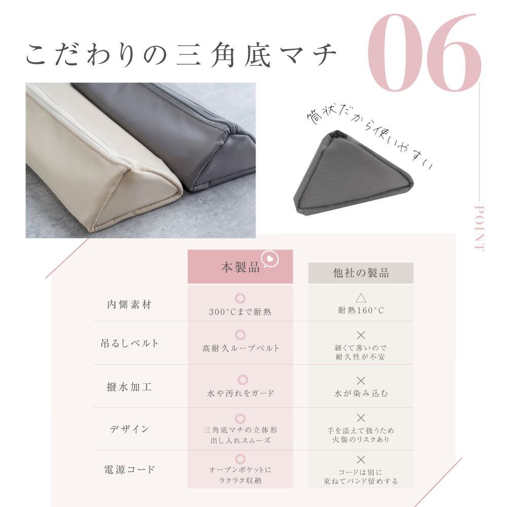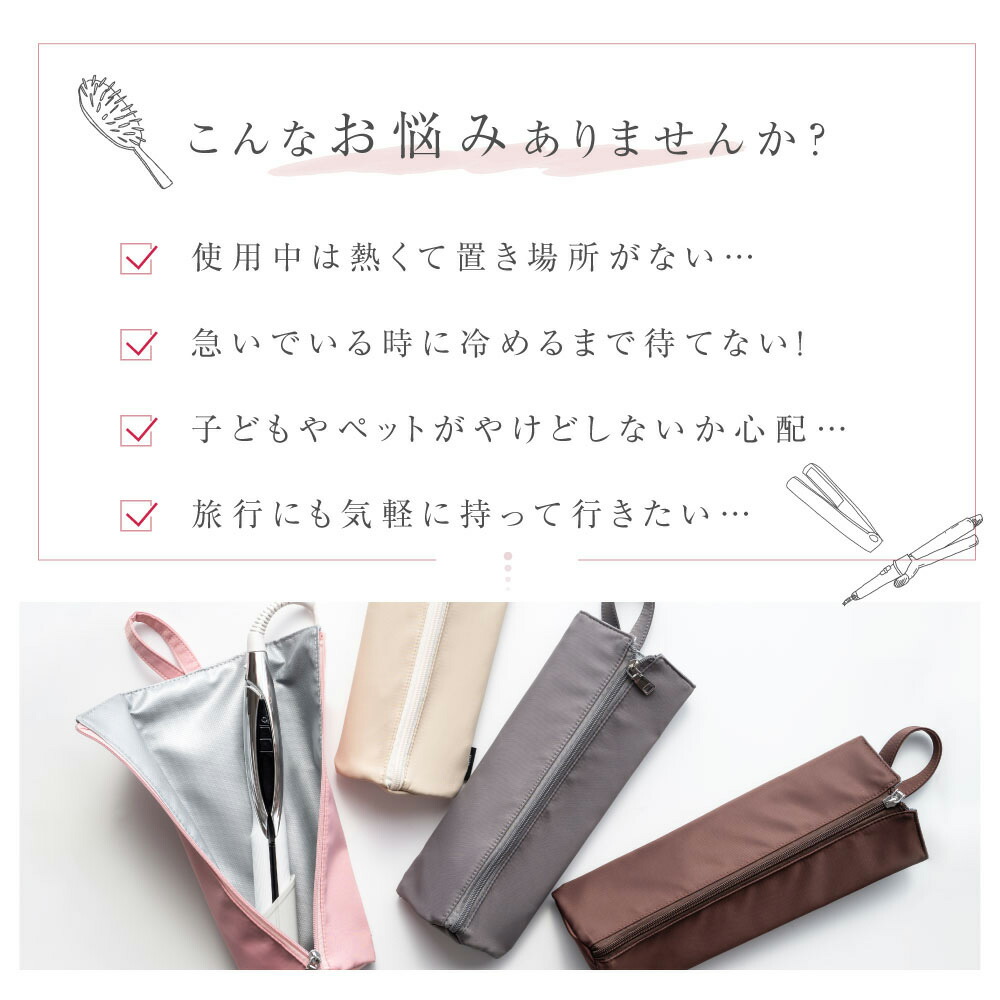 ヘアアイロンケース 耐熱 収納 ポーチ バッグ 小物 ブランド雑貨 人気 アイボリー ホワイト ピンク ブラウン グレー ダークグレー