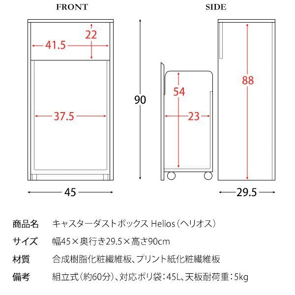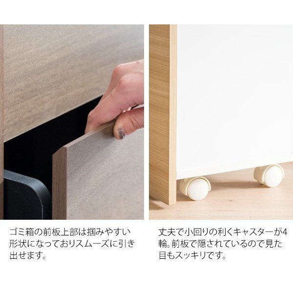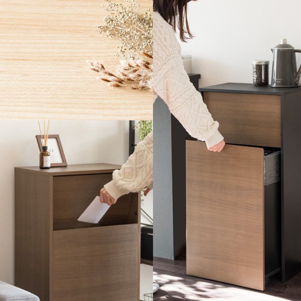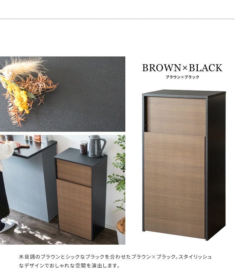 ゴミ箱 45L キャスター付き 木製 ブラウン ナチュラル ブラウン×ブラック ホワイト