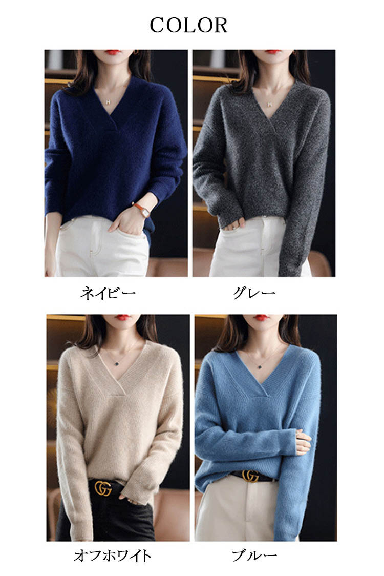 ニットトップス レディース 秋冬 vネ トップス ニット セーター セーター 豊富な品揃え オフホワイト グレー ブルー ネイビー