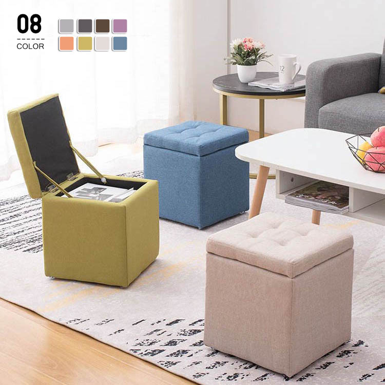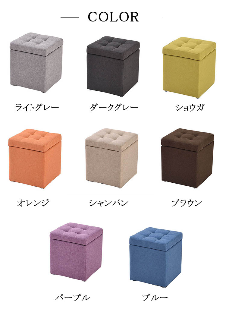 スツール いす 収納付き 正方形 箱型 ライトグレー ダークグレー ショウガ オレンジ シャンパン ブラウン パープル ブルー