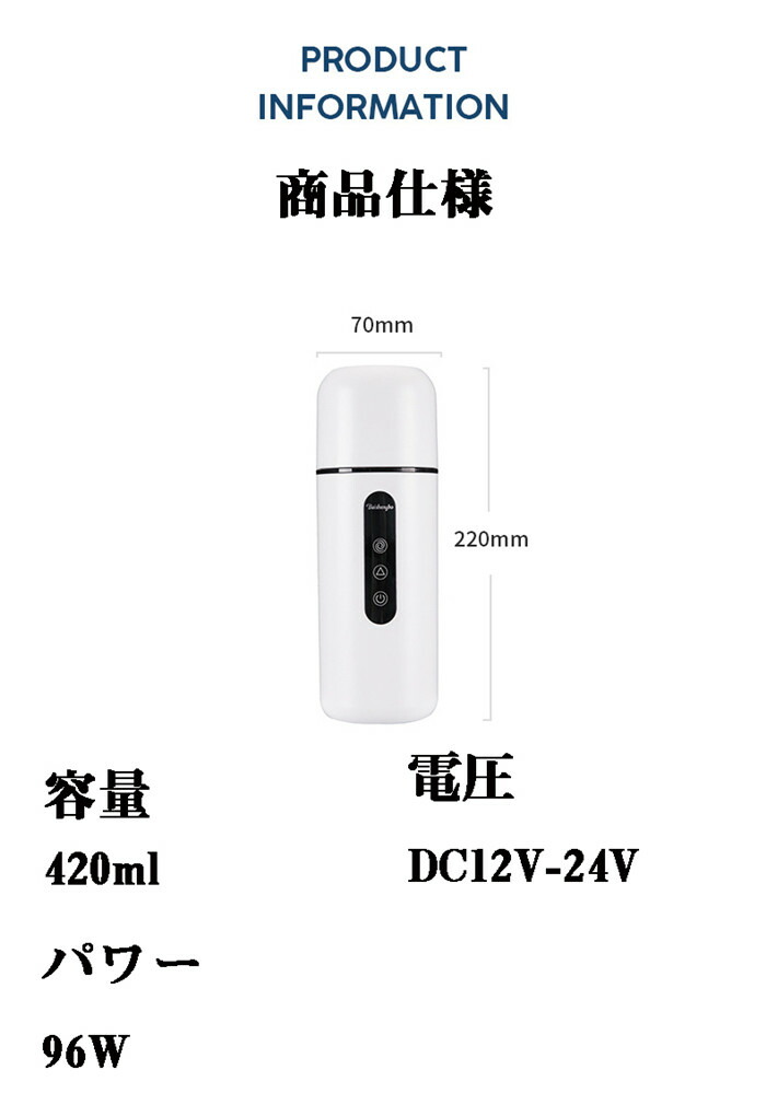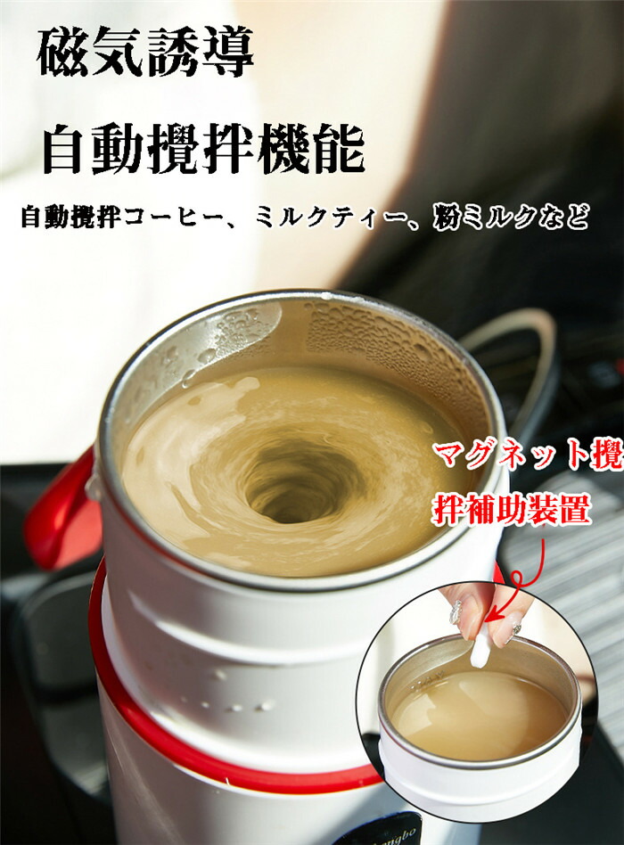 電気ケトル 車載 40℃~100℃ 4 ブラック(白の縁取り) ホワイト(黒の縁取り) ホワイト(赤の縁取り) 304ステンレス鋼(攪拌機能なし) 304ステンレス鋼(攪拌機能あり) セラミック内胆(攪拌機能あり)