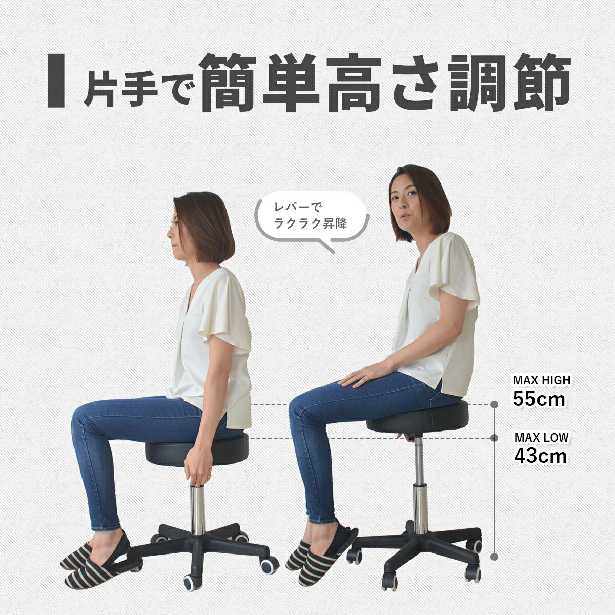 昇降スツール 丸椅子 抗菌 スツール 昇降式 キャスター付き 回転イス 丸イス 昇降式スツール 回転椅子 高さ調整 シンプル オフィスチェア テレワーク 在宅ワーク PCチェア イス リモートワーク