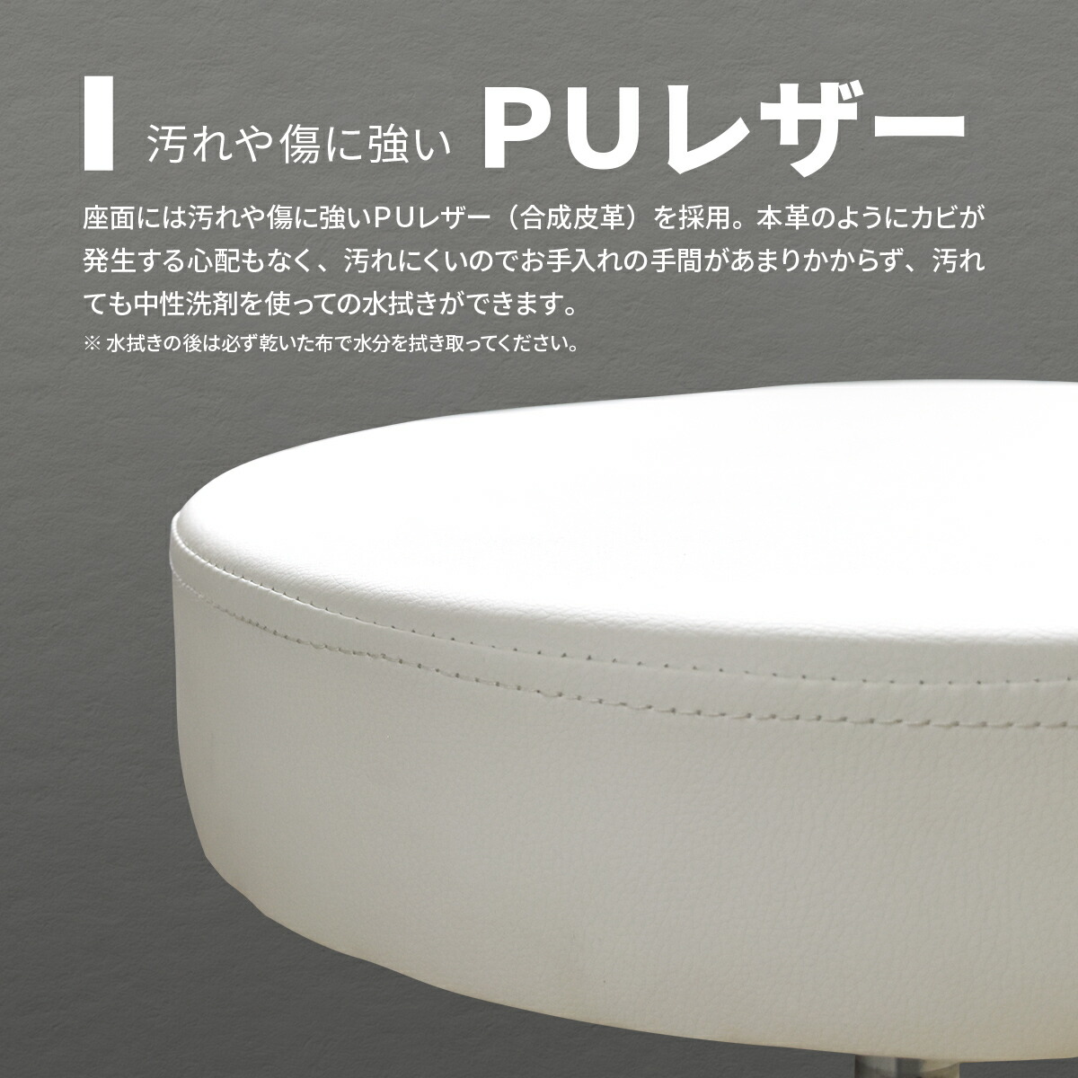 座面は丈夫なウレタンに質感柔らかなPU張りでお手入れも簡単。