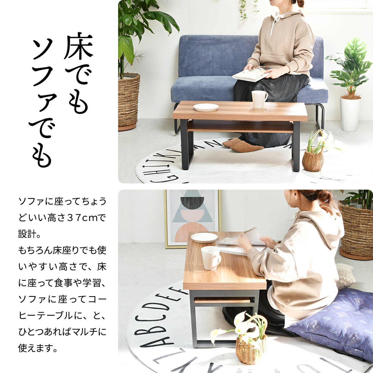 床座りでも、ソファに座ってもちょうどいい高さ37cmで設計。