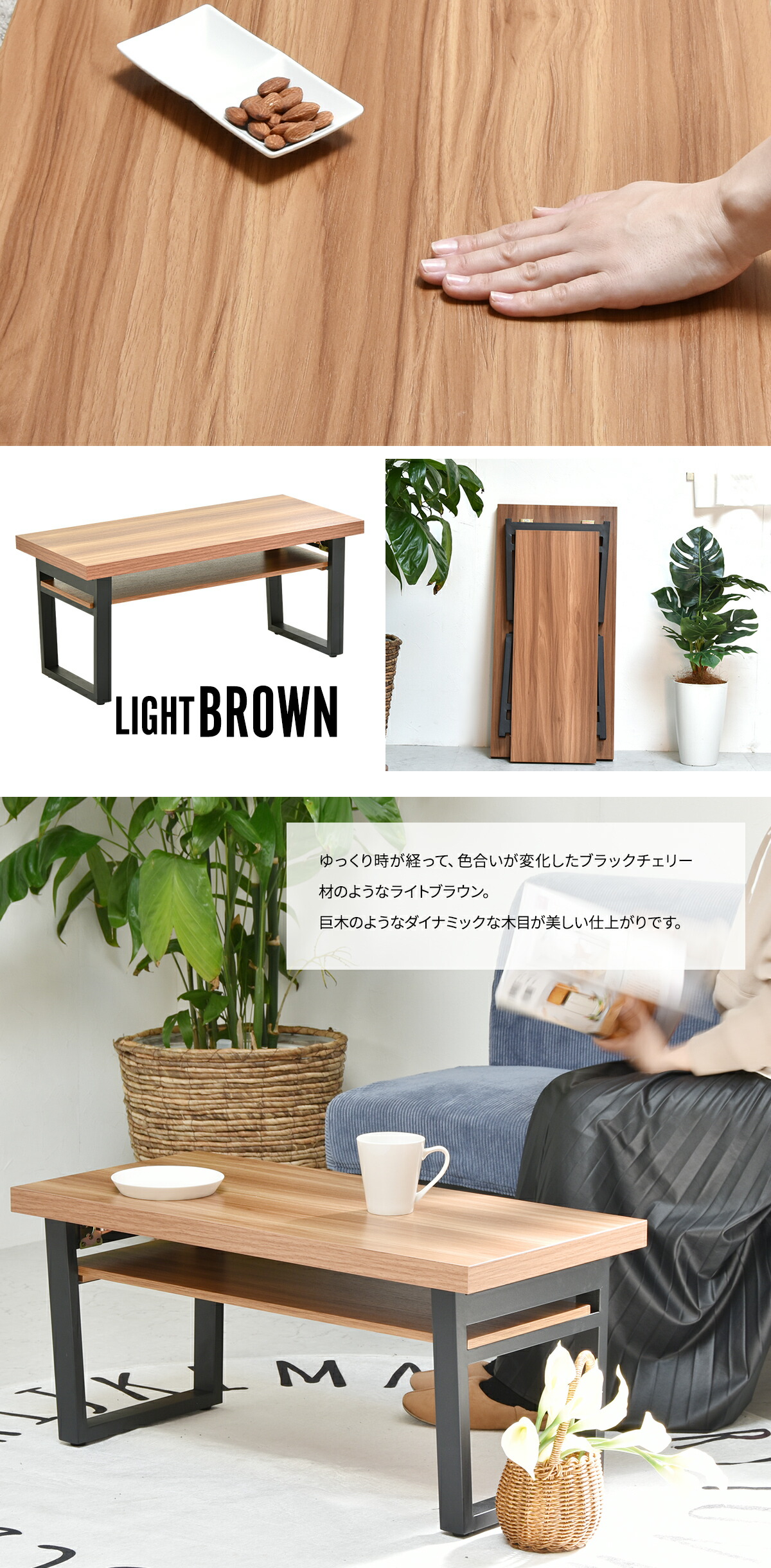 木目調が美しいFACILEシリーズから使いやすい折りたたみのローテーブルが登場しました。