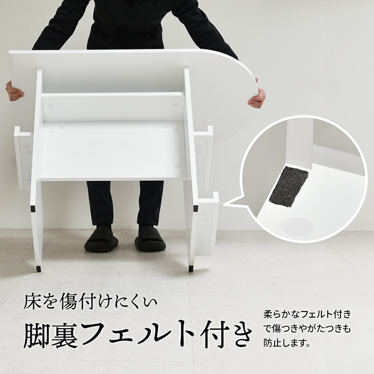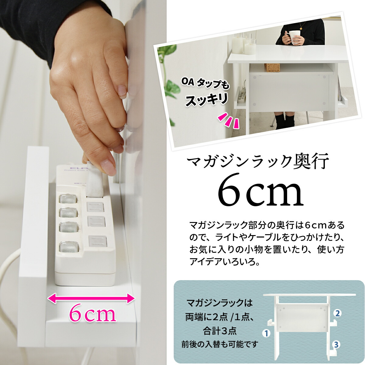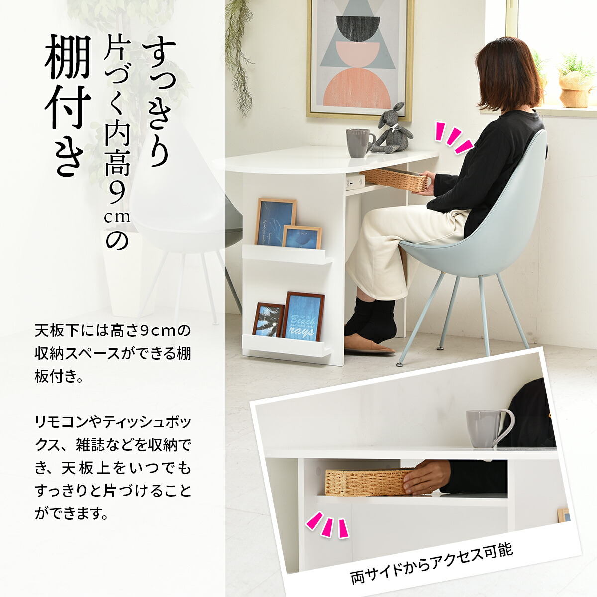 天板下には、いつでもすっきり片づけられる高さ9cmのスペースができる棚板付き。