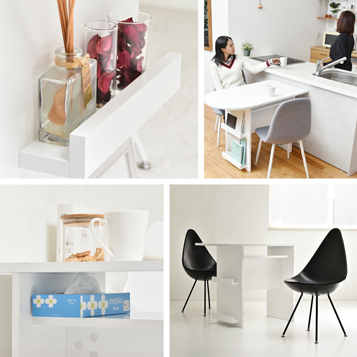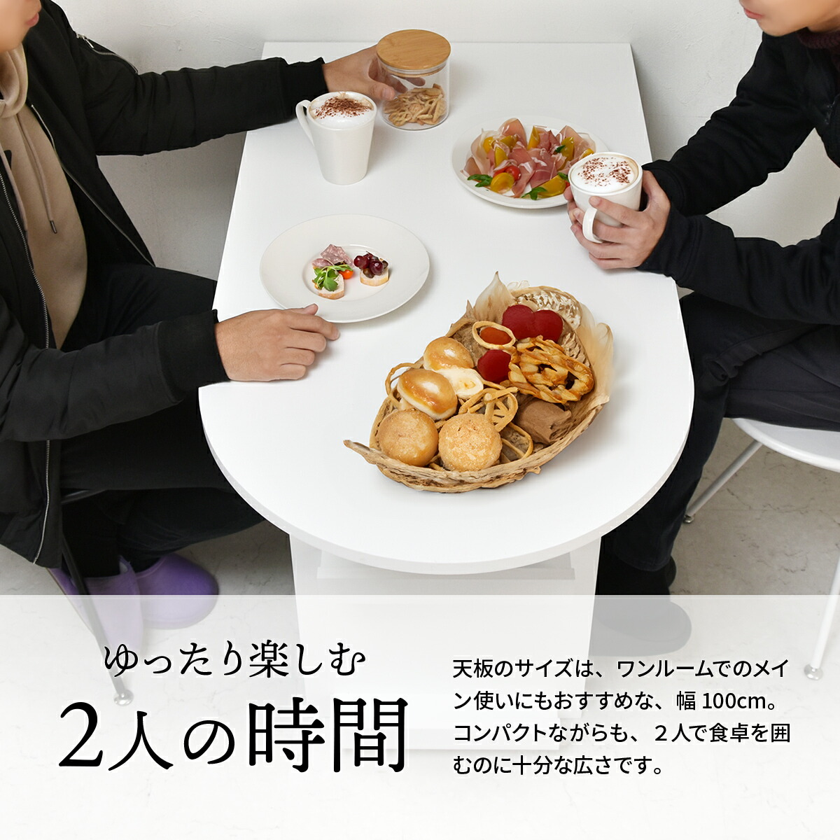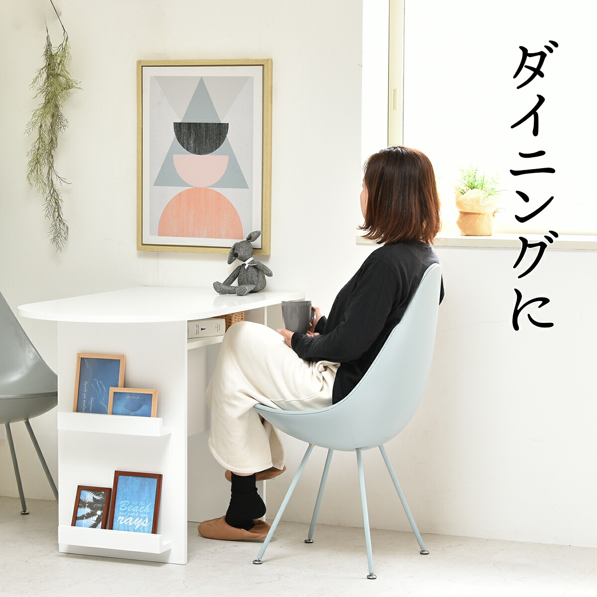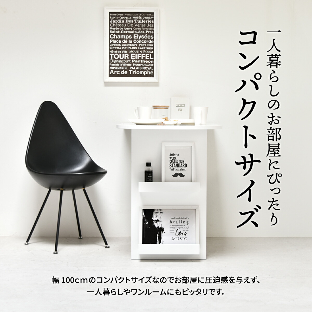 ダイニングテーブル 幅100cm 壁付け マガジンラック付き 収納付き 半円テーブル 半円ダイニングテーブル シンプル おしゃれ かわいい コンパクト スリム ミッドセンチュリー 白 ホワイト 北欧