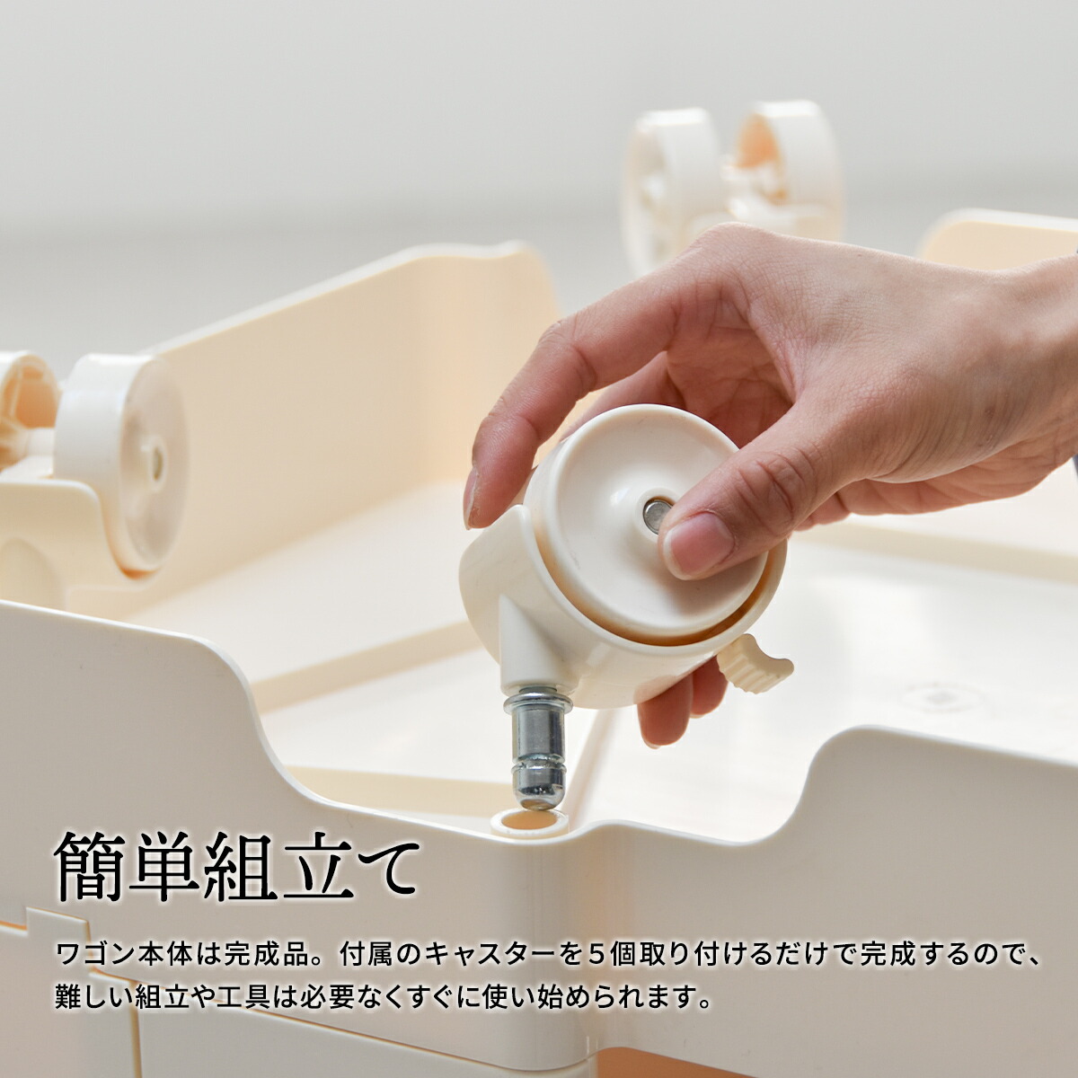 キャスターを差し込むだけで完成する半完成品。難しい組立ては一切ないので