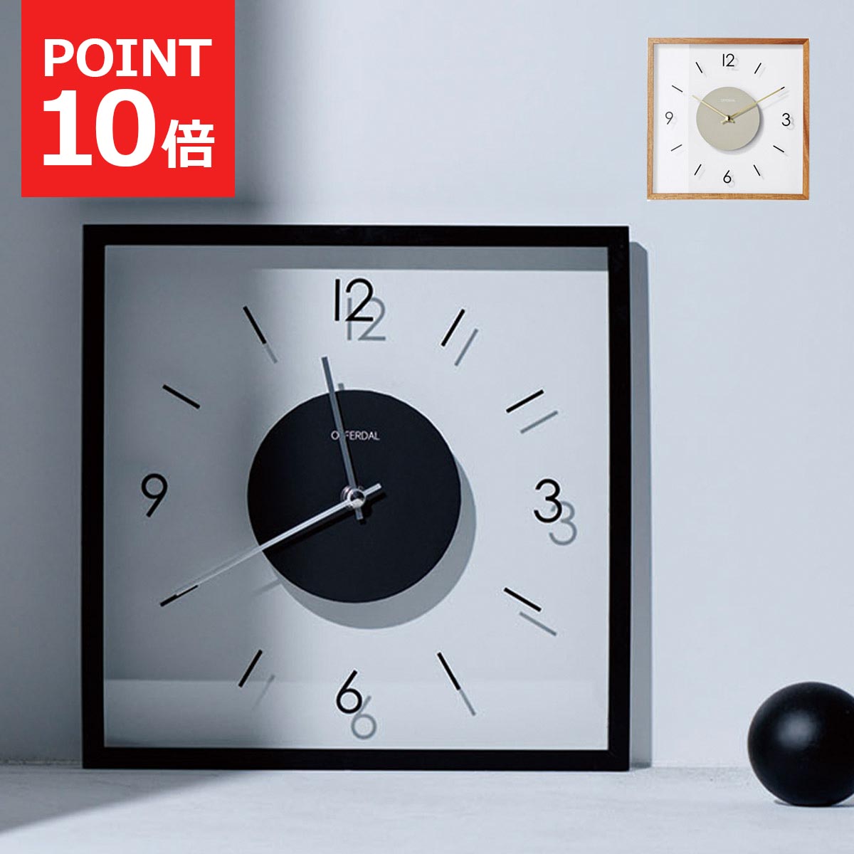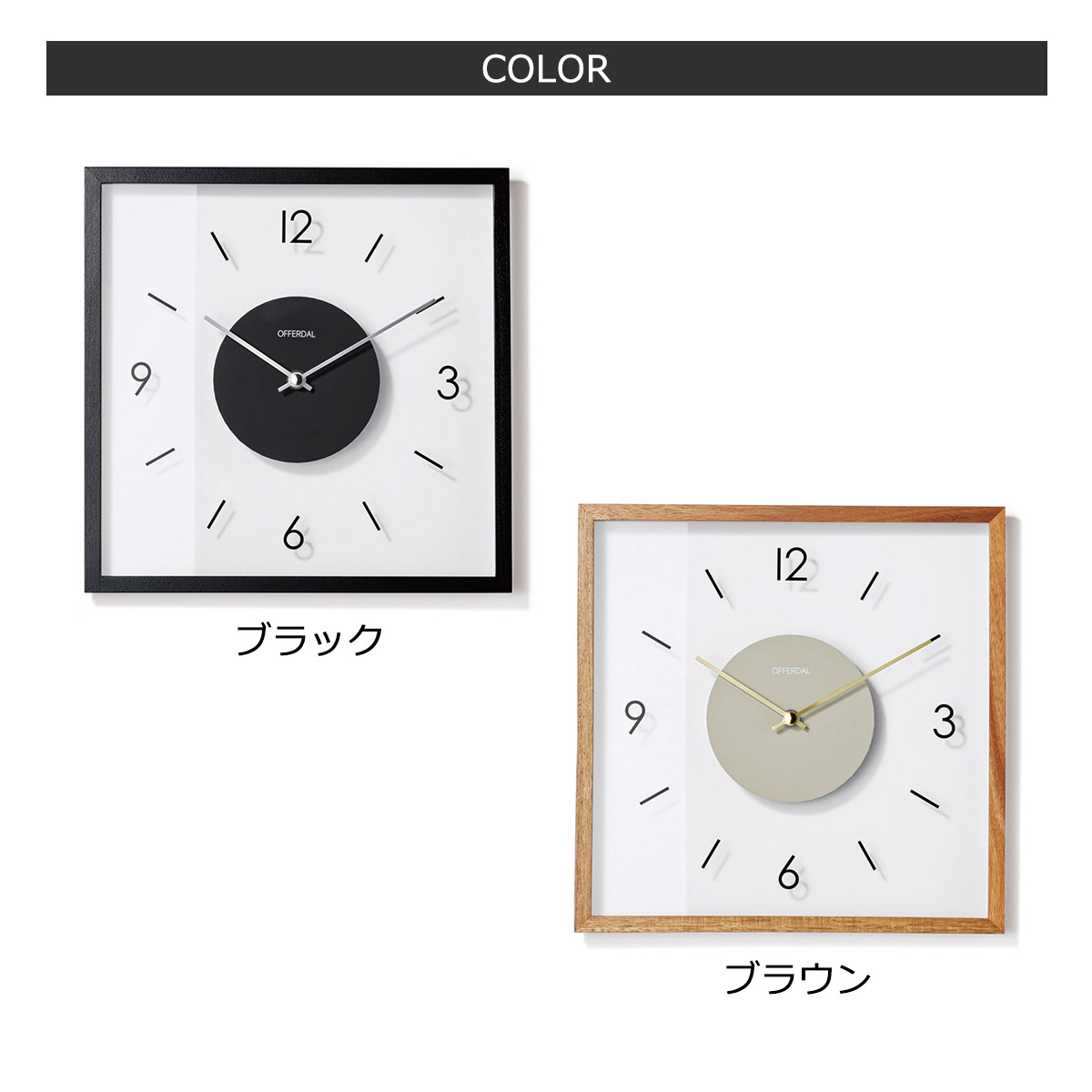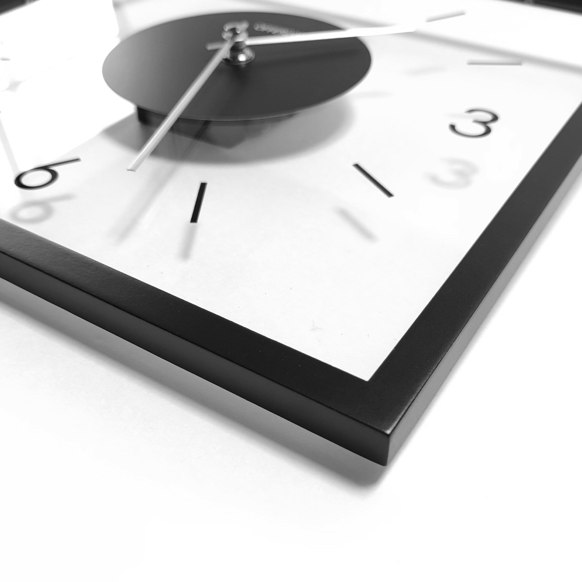 透明なガラス製の文字盤がモダンな雰囲気を宿したスクエアタイプのウォールクロック。宙に浮いたような数字とインデックスが生む影もデザインの一部として計算されています。わずか2.5cmのスリムな奥行きとポスターフレームのような細いウッドフレームが洗練された佇まいをより一層引き立てるモダンなデザインです。文字盤部分が透明なので、飾る壁の色によって様々な表情を見せてくれます。カラーはブラックとブラウンの2色を用意。ブラウンは木の質感を生かした木目の良さが感じられるフレームになっています。ブラックにはシルバーの針を合わせてスタイリッシュな印象に、ブラウンにはゴールドの針であたたかみのある印象に仕上げました。コチコチと音がしないスイープムーブメントを採用。※秒針はありません。