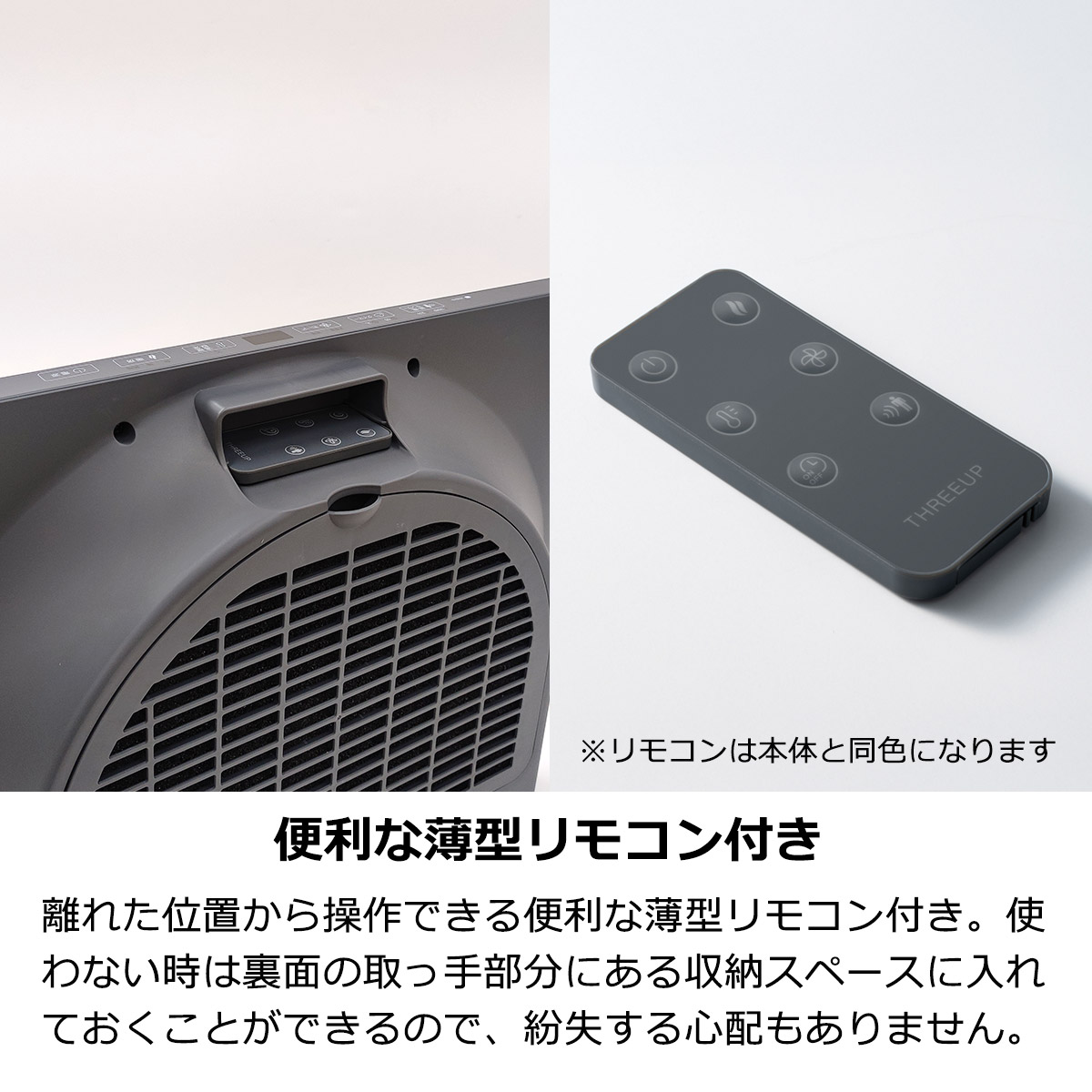 便利な薄型リモコン付き