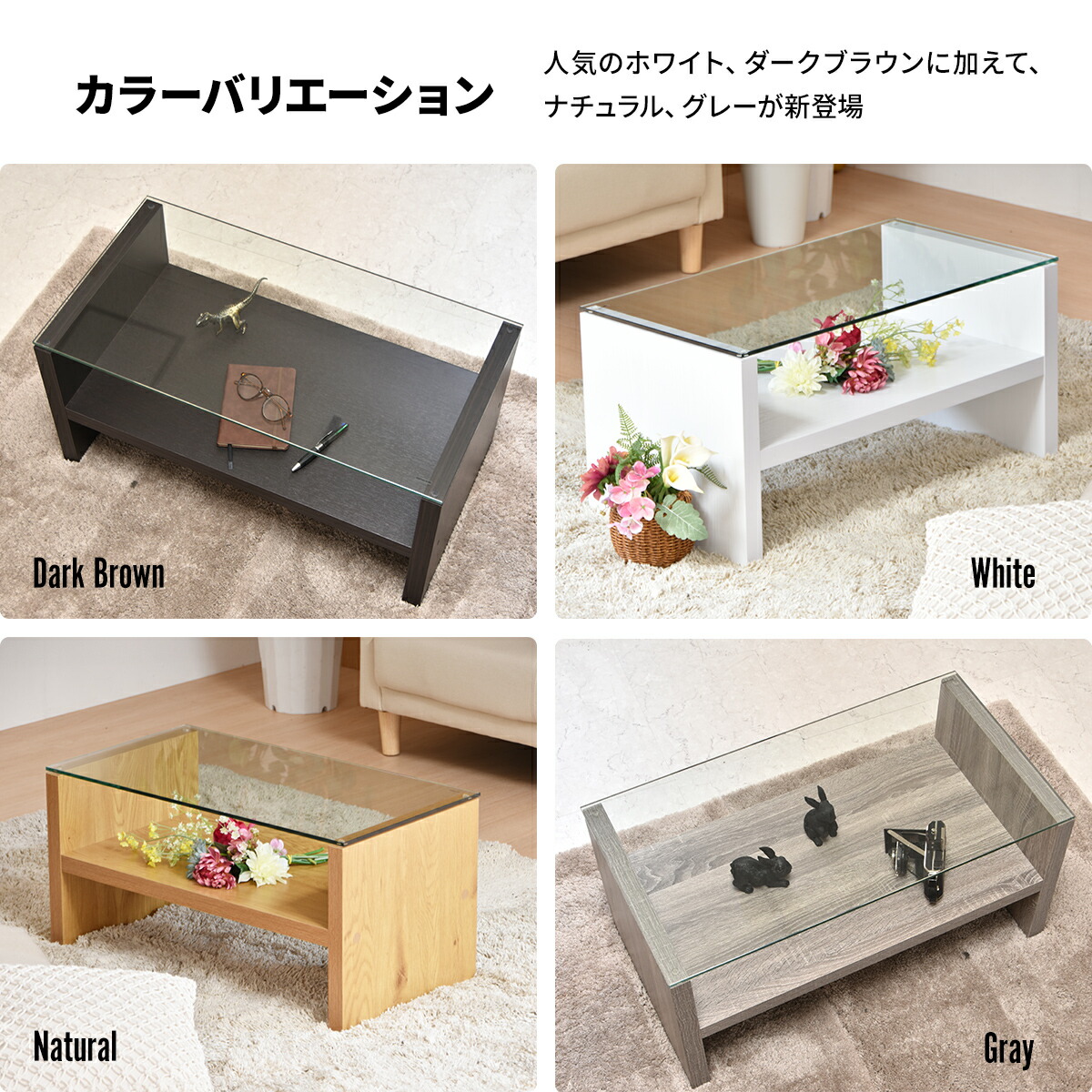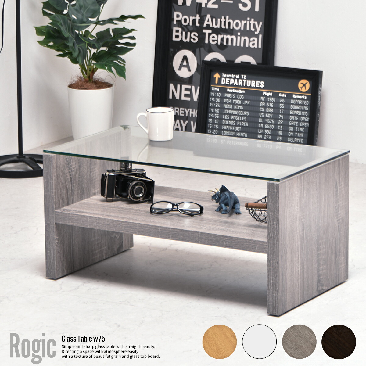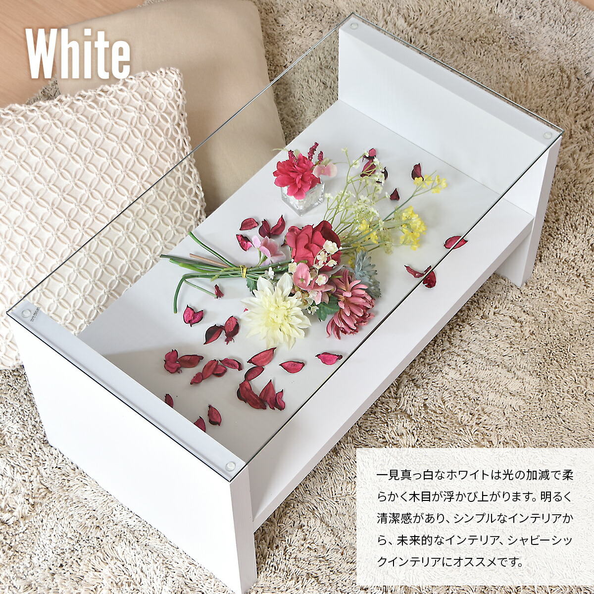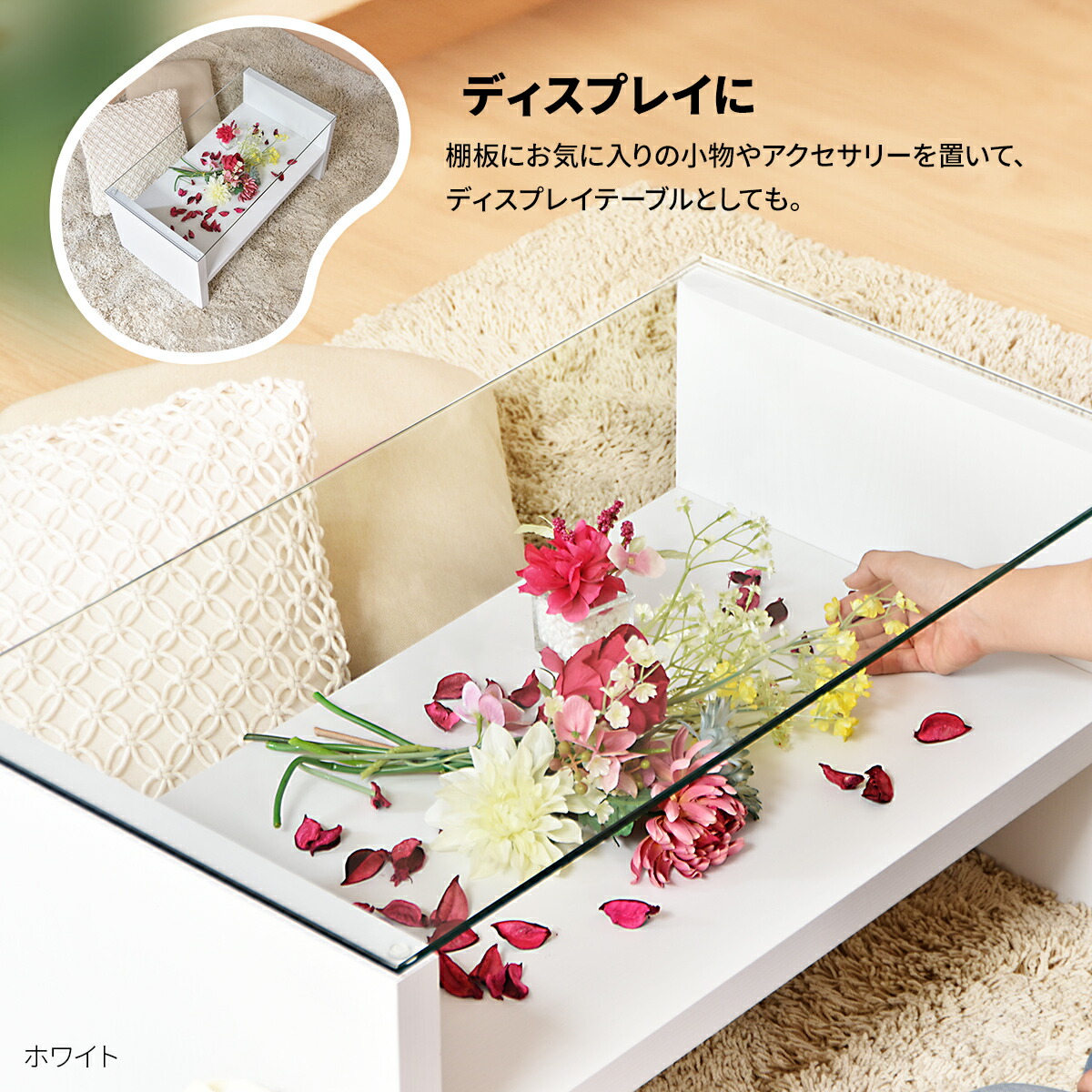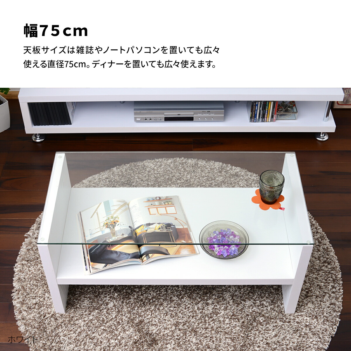 テーブル センターテーブル 幅75 おしゃれ ローテーブル リビングテーブル ガラス ガラステーブル モダン 北欧 木製 ディスプレイ シンプル 収納付き 棚付き ホワイト ブラウン 茶 白