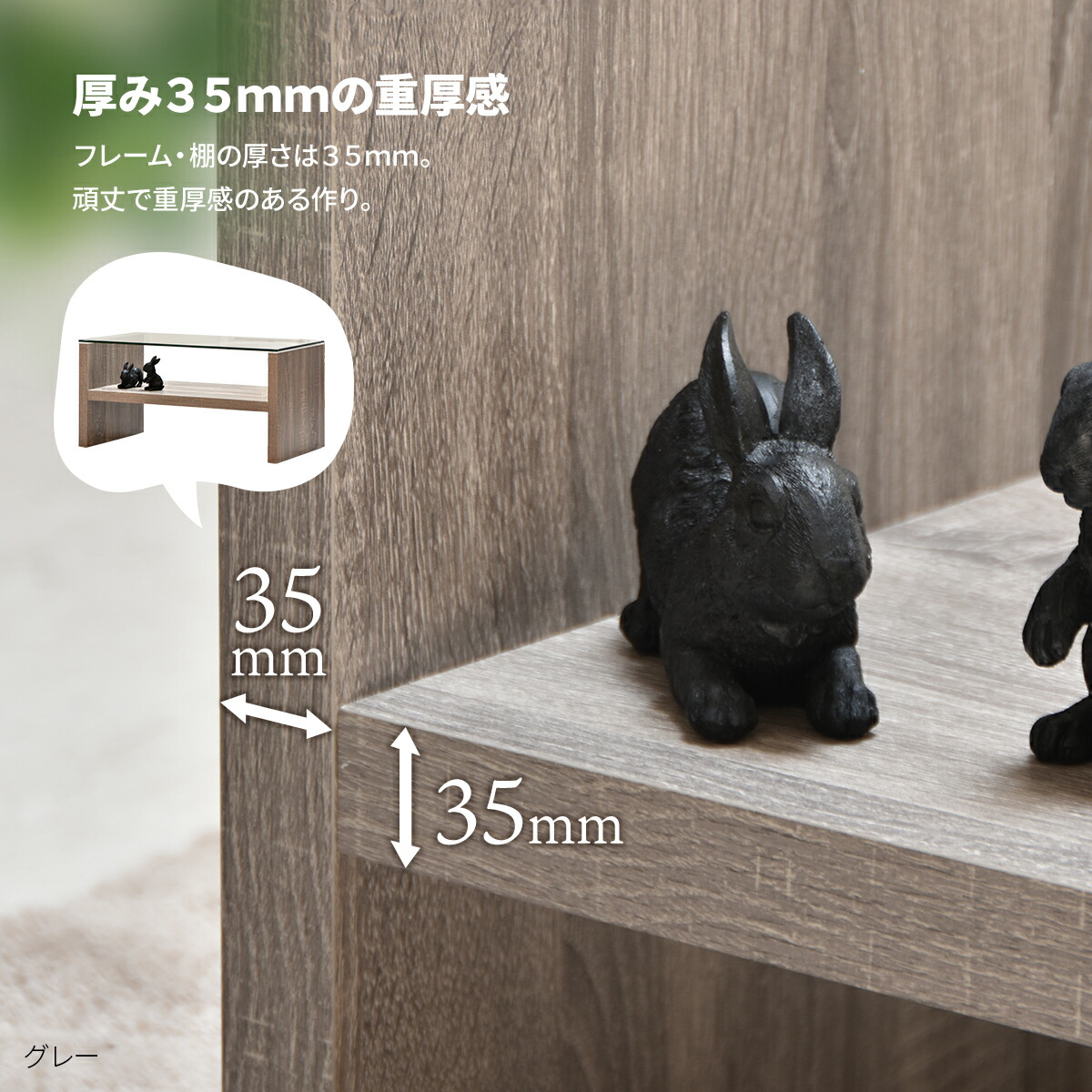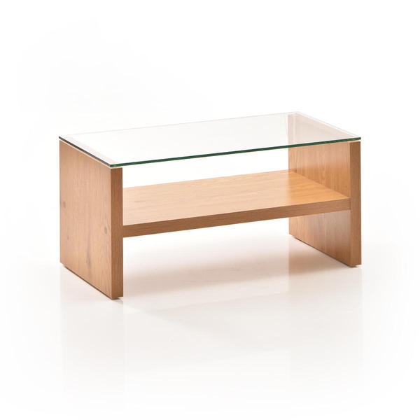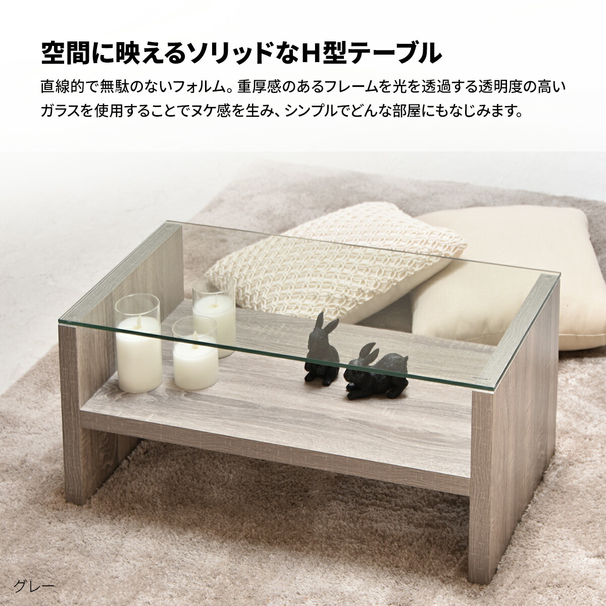 直線美をいかしたシンプルでシャープなガラステーブル。美しい木目の質感とガラス天板で、手軽に雰囲気のある空間を演出します。シンプルでシャープなデザインなので場所を選ばず、洋室はもちろん和室でも使用しても、違和感なくその場所に馴染みます。もう一つの大きな魅力は、クリアガラスの天板と、35mmのしっかりとした棚板。棚板にお気に入りの小物やアクセサリーを置いて、ディスプレイテーブルとしても。