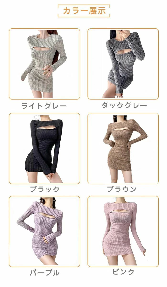 胸開き 胸あき セクシー リブ ニット スポーツ アウトドア 豊富な品揃え ライトグレー ダックグレー ブラック ブラウン パープル ピンク S M L