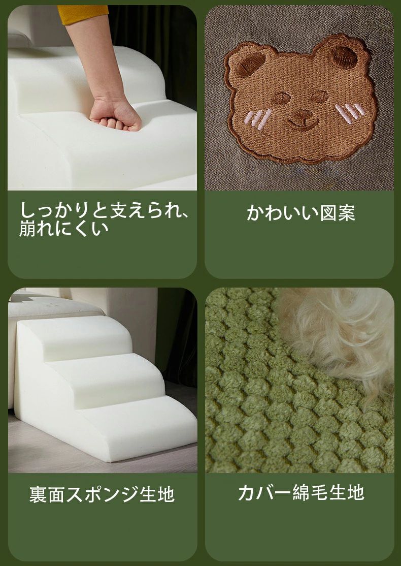 犬階段 犬スロープ階段 犬用ステップ 犬用品 介護用品 スロープ ステップ 通販 コーヒー グリーン 2段 3段 4段