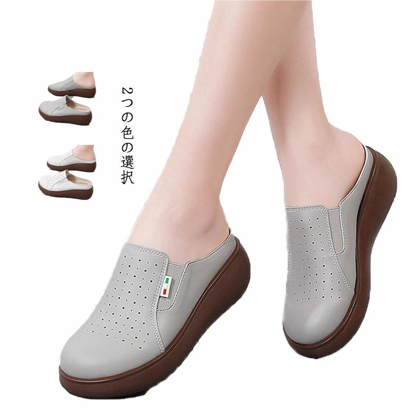 サンダル レディース かかとなしシュー レディース靴 ミュール 特集 ホワイト グレー 35 36 37 38 39 40