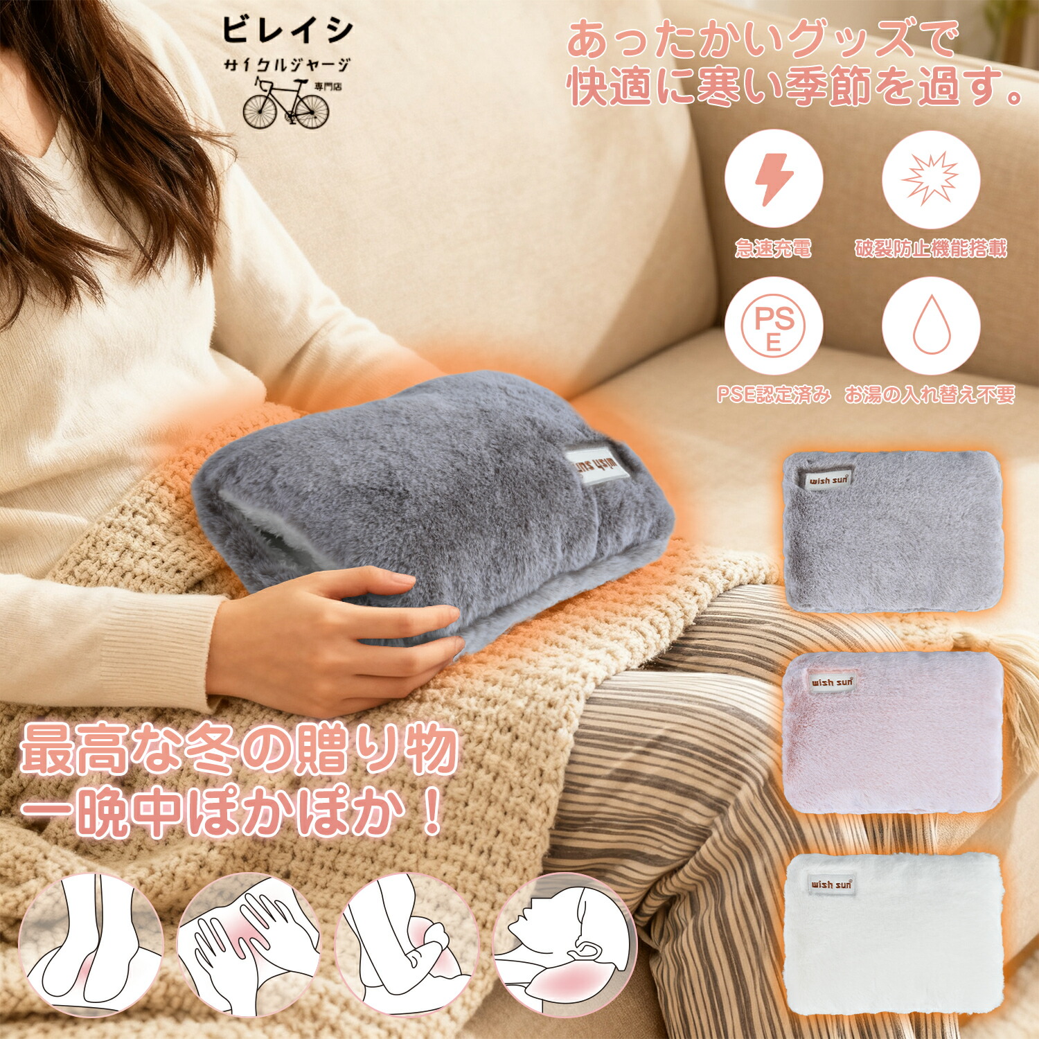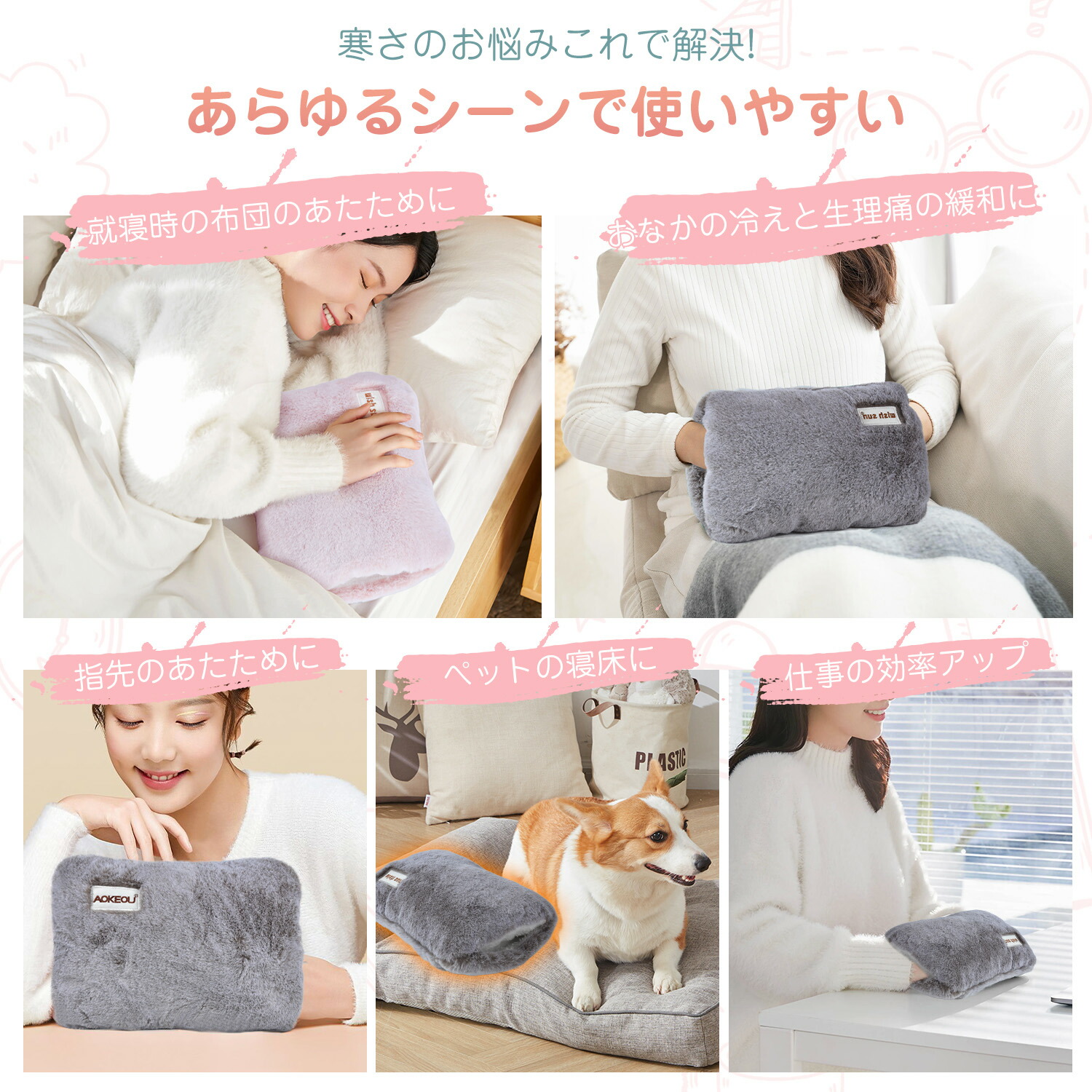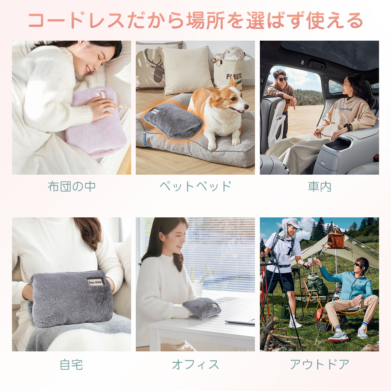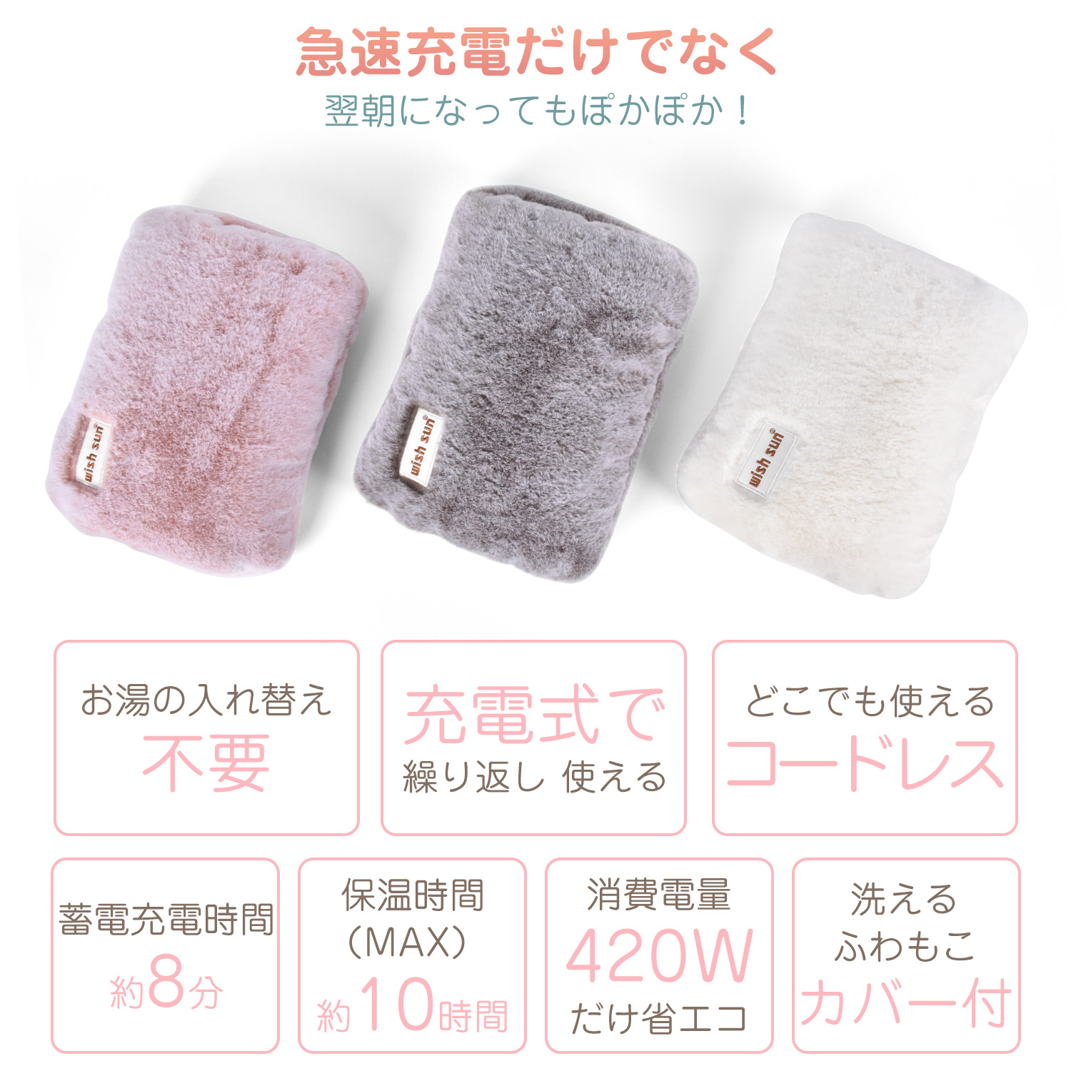 湯たんぽ 充電式 長時間ゆたんぽ かわ ホワイト グレー ピンク