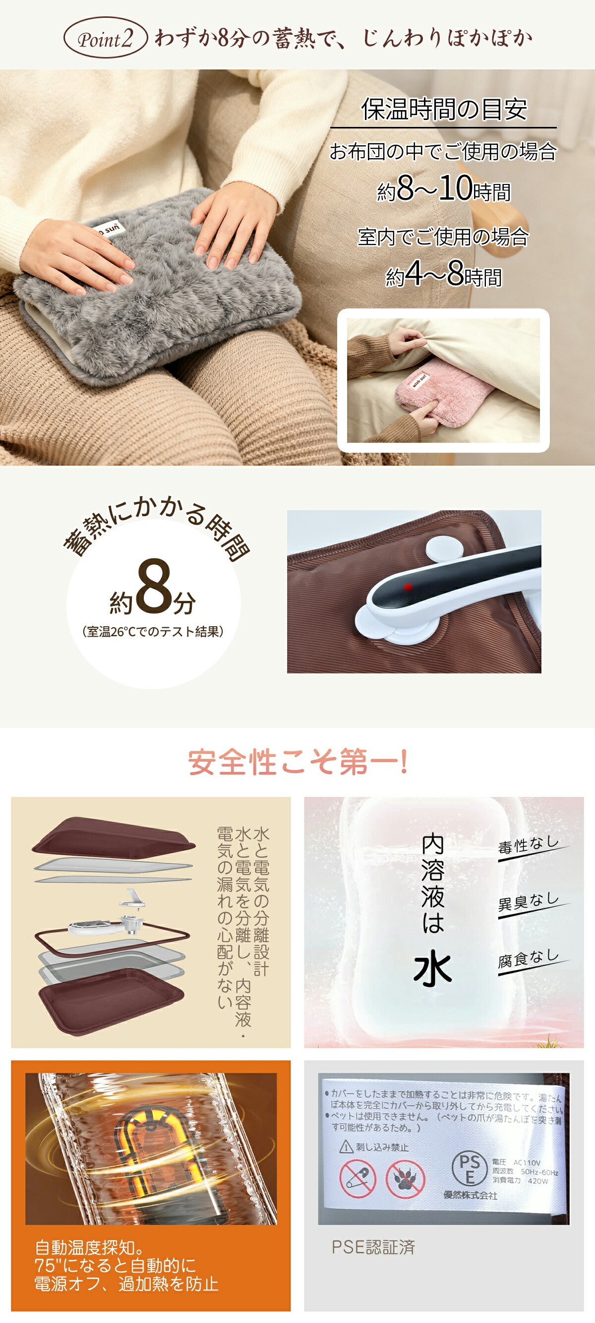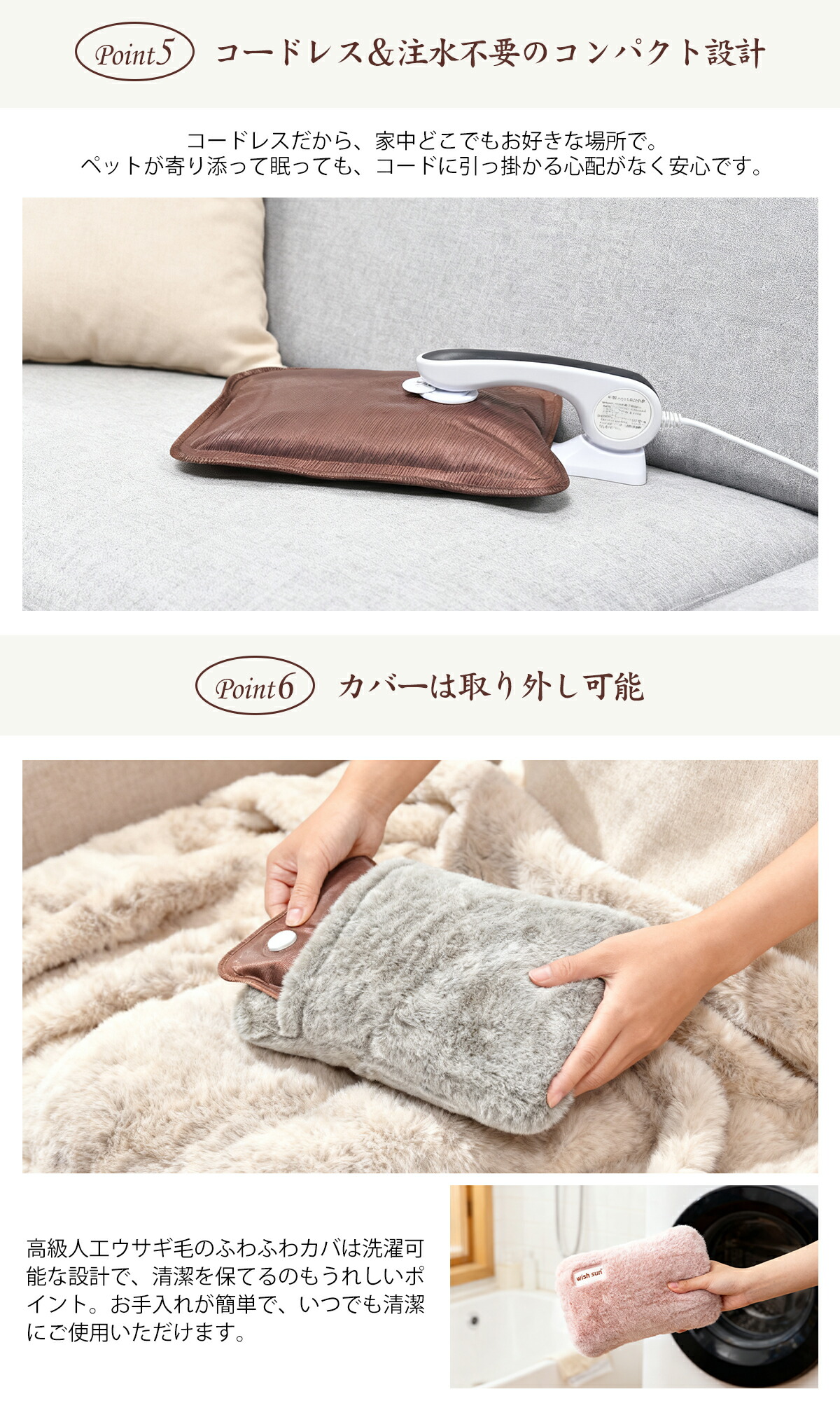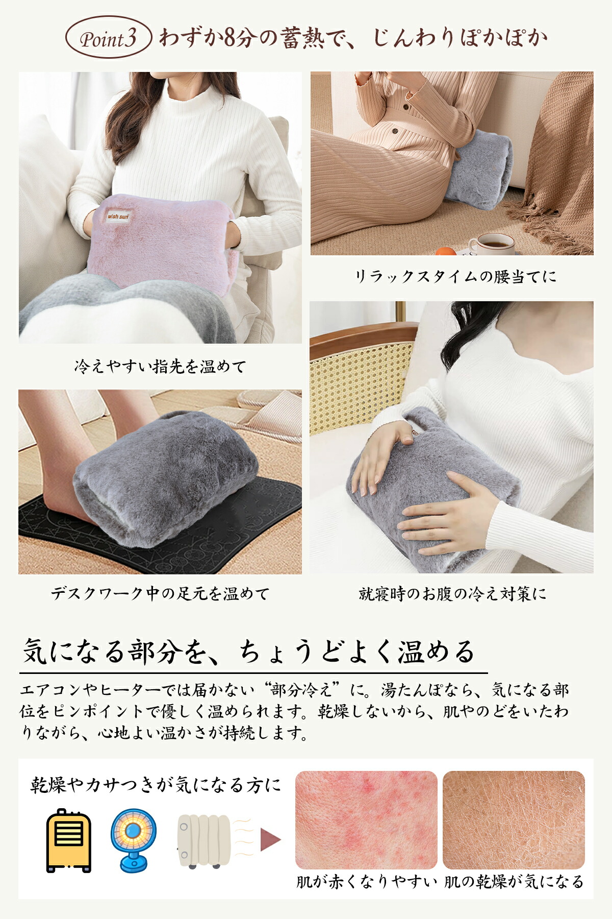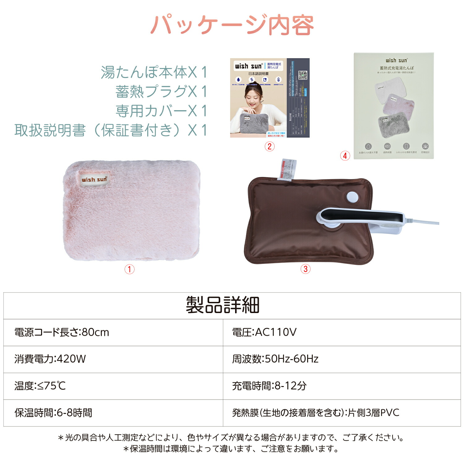 湯たんぽ 充電式 長時間ゆたんぽ かわ ホワイト グレー ピンク