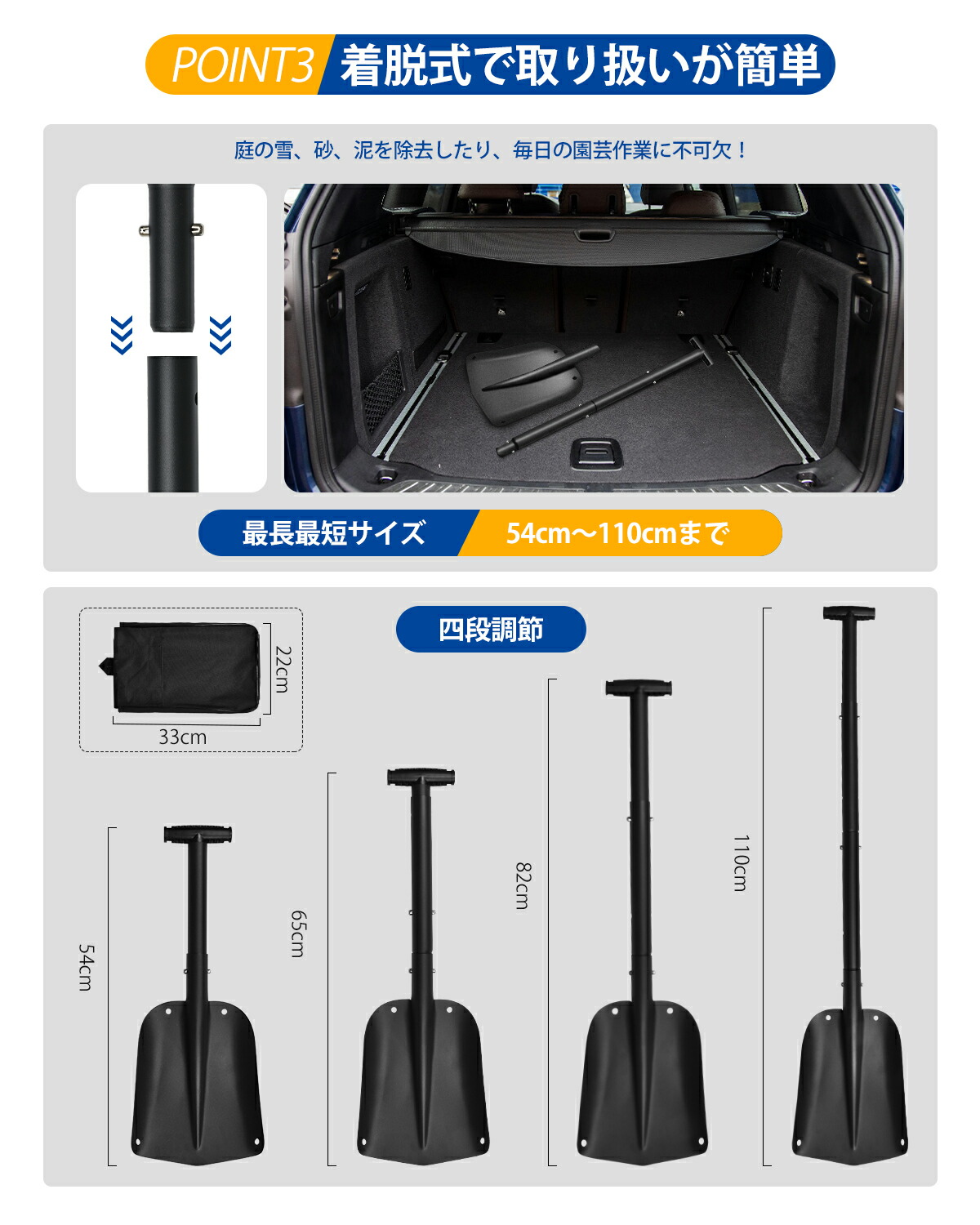 雪かき 道具 スノーショベル 伸縮式